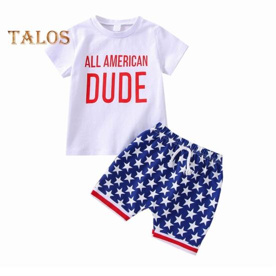 Стиль: Этот очаровательный комплект состоит из топа с круглым вырезом, короткими рукавами и забавным принтом в виде букв, а также шорт с эластичной талией, что создает модный и милый образ, который понравится детям.