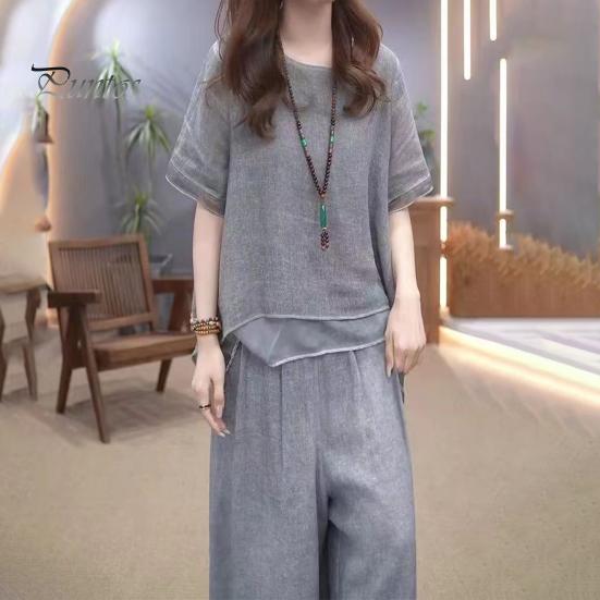 Легкий и дышащий: Этот женский костюм, изготовленный из смеси хлопка и льна, обеспечивает исключительную воздухопроницаемость, сохраняя прохладу и комфорт весной, летом и осенью.. Идеально подходит для повседневного ношения и обеспечивает стильный и непринужденный образ для различных случаев.