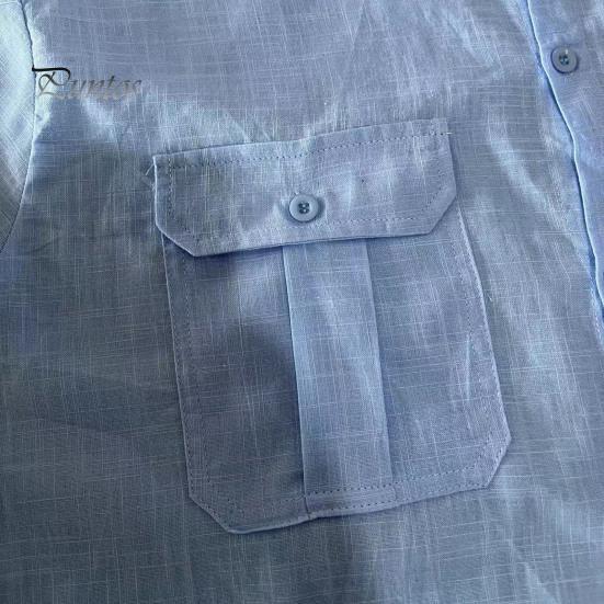 Комфорт и долговечность: Ощутите максимальный комфорт и долговечность в этом мужском топе из смеси льна и полиэстера.. Высококачественная ткань обеспечивает долговечность и прочность, а дышащая текстура обеспечивает ощущение прохлады и комфорта в течение всего дня.