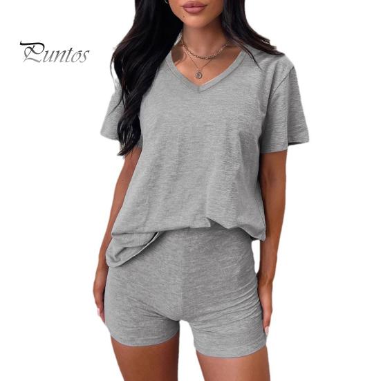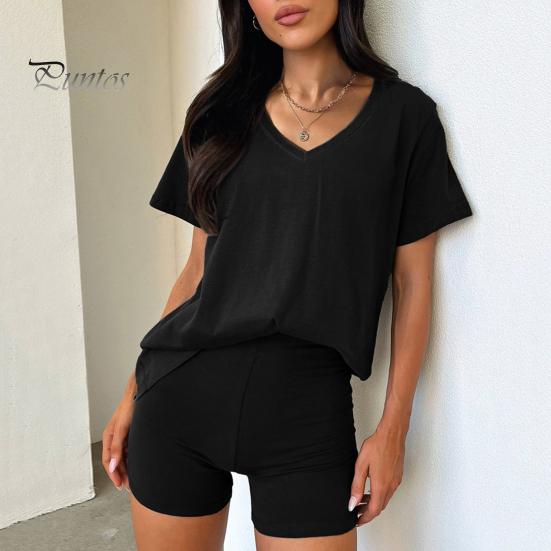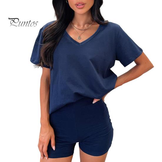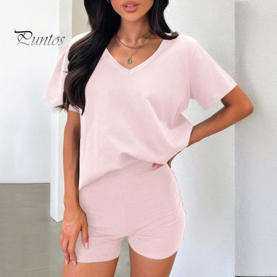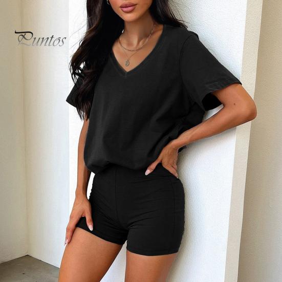 Удобная посадка: Этот костюм с эластичными шортами и топом с короткими рукавами и V-образным вырезом в стандартной версии обеспечивает удобную и подчеркивающую фигуру посадку.. Дизайн сочетает в себе практичность и моду, что делает его идеальным для повседневной носки или особых случаев.