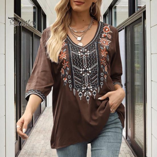 Женская блузка, традиционная мексиканская женская вышитая рубашка свободного кроя с цветочным принтом и рукавом 3/4, повседневная одежда — купить товар онлайн с бесплатной доставкой до всему миру!