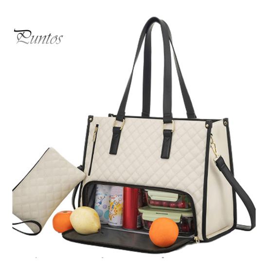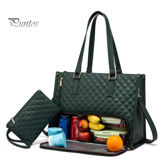 Независимо от того, направляетесь ли вы в офис, университет, на деловую встречу или на выходные, эта роскошная многофункциональная сумка-тоут подойдет вам идеально.. Нижняя обеденная перегородка обеспечивает достаточно места для хранения повседневной еды и фруктов, а в верхнем отделении можно разместить ноутбуки, зарядные устройства и канцелярские принадлежности.