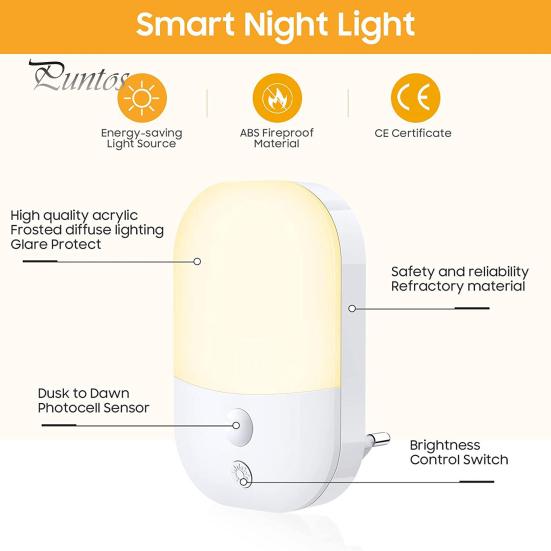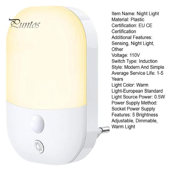 Ночной светильник с датчиком заката и рассвета, 5 уровней яркости, регулируемая яркость, гостиная, спальня, ванная комната, коридор, лестница, светодиодный ночник