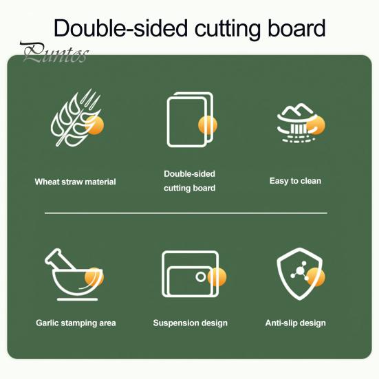 Двусторонняя функциональность: Универсальная разделочная доска с двумя отдельными сторонами для разных категорий продуктов. Легко переключайтесь между нарезкой приготовленного мяса на одной стороне и измельчением овощей или фруктов на другой, предотвращая перекрестное загрязнение.
