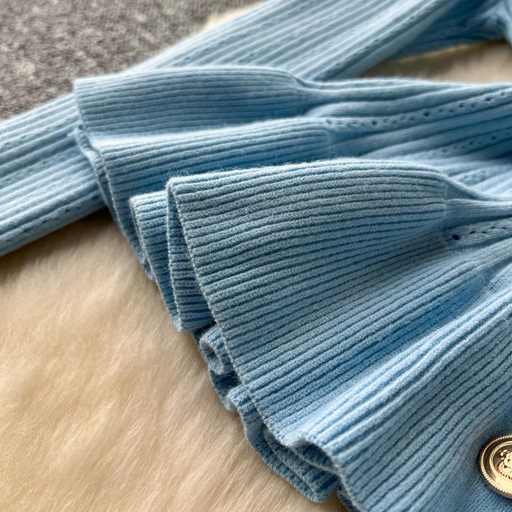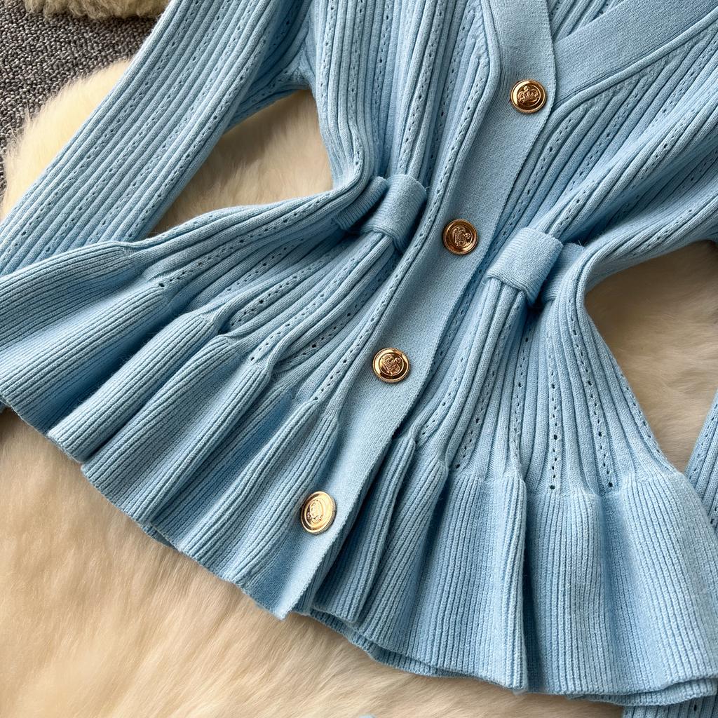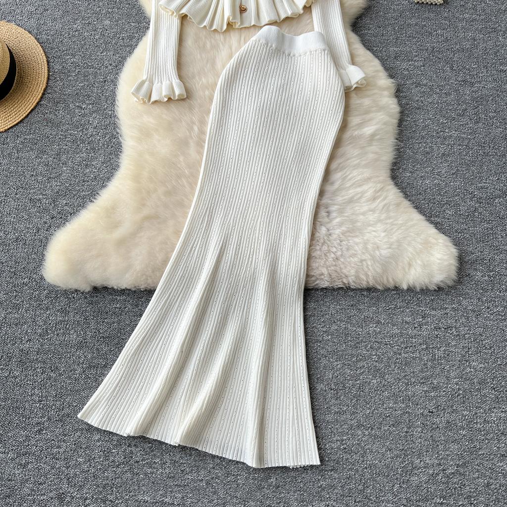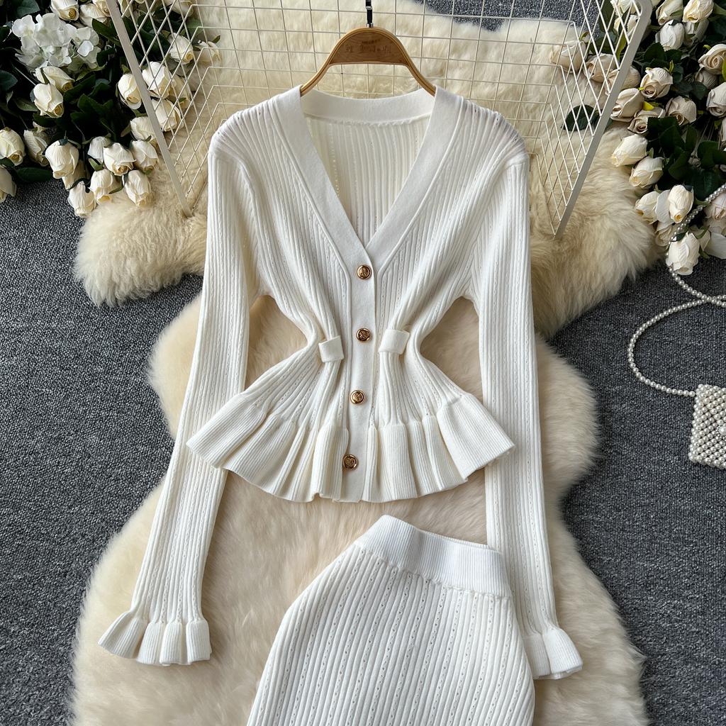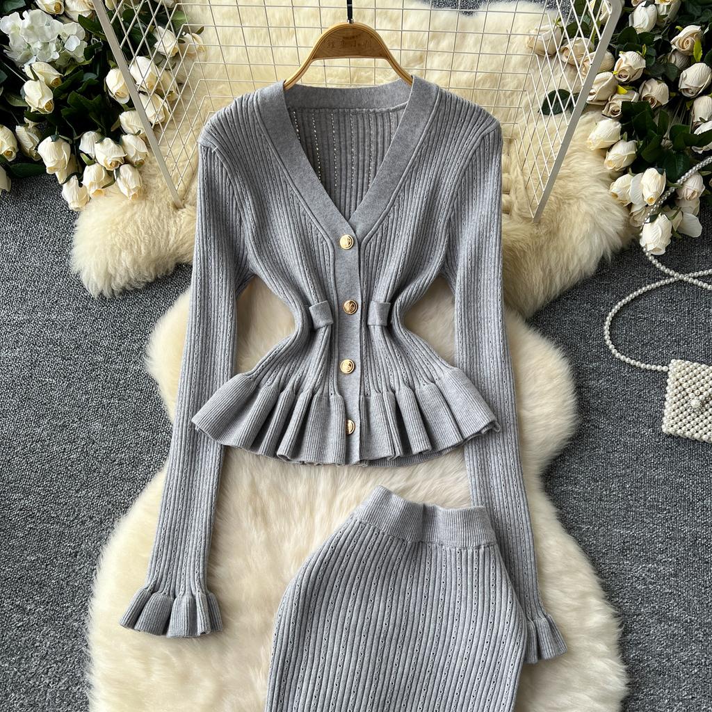 Корейские комплекты из двух предметов, женские наряды, туника с длинным рукавом, укороченный кардиган, облегающая туника с высокой талией, юбка, костюм, модный трикотажный комплект