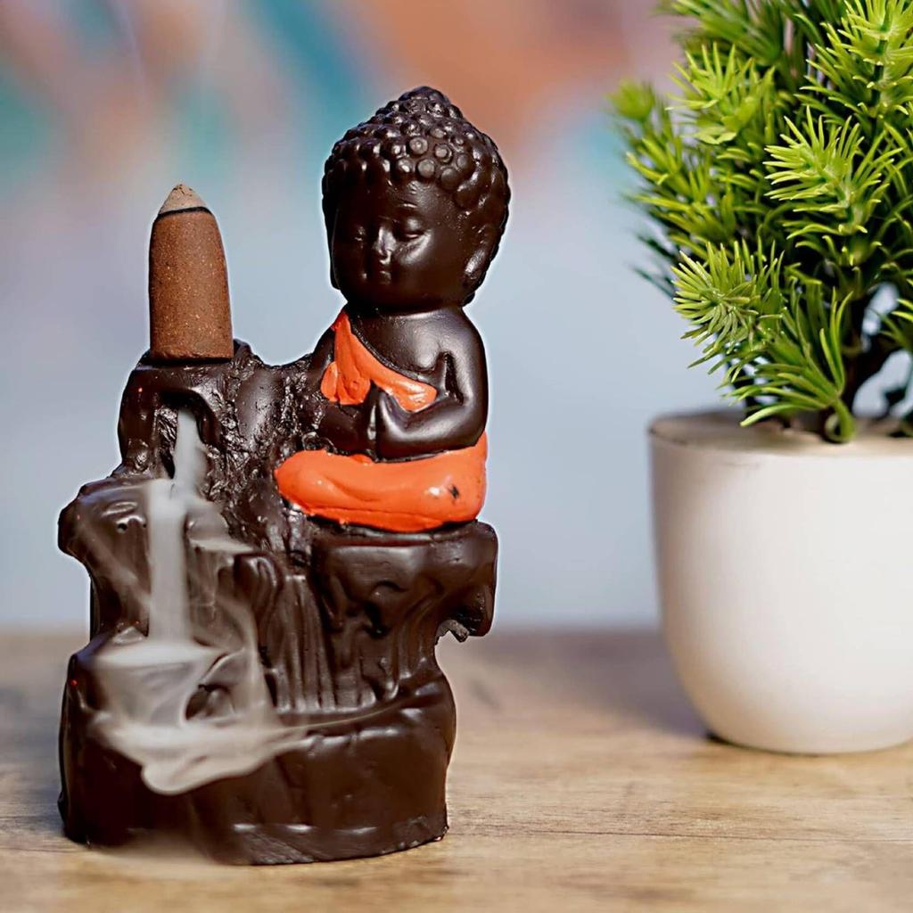 ОРАНЖЕВЫЙ БУДДА С 10 конусами, Статуэтка из полистоуна B_3 Декоративный экспонат - 8 см (Полирезин, Коричневый, Многоцветный)
