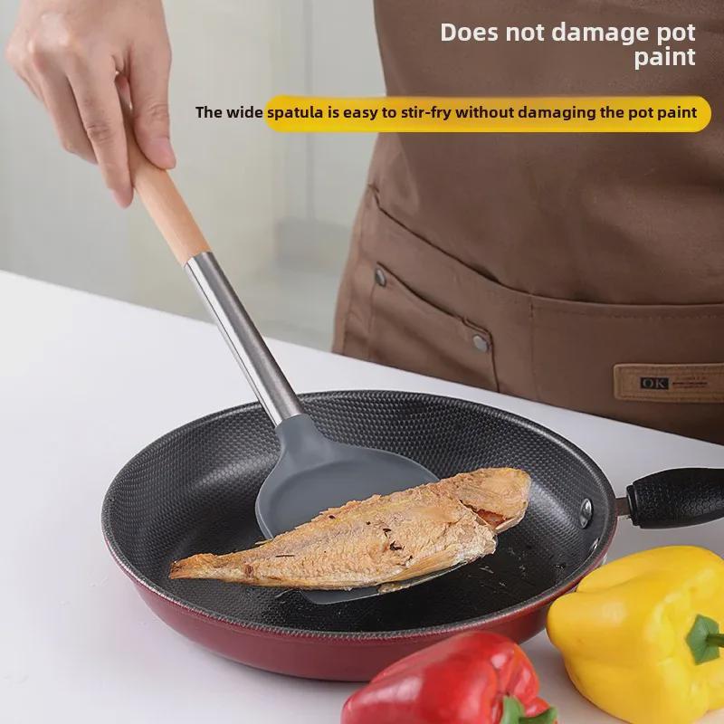 Набор силиконовых кухонных принадлежностей: Лопатка с деревянной ручкой, ложка, кухонные принадлежности с антипригарным покрытием, 3 предмета — купить товар онлайн с бесплатной доставкой по всему миру!