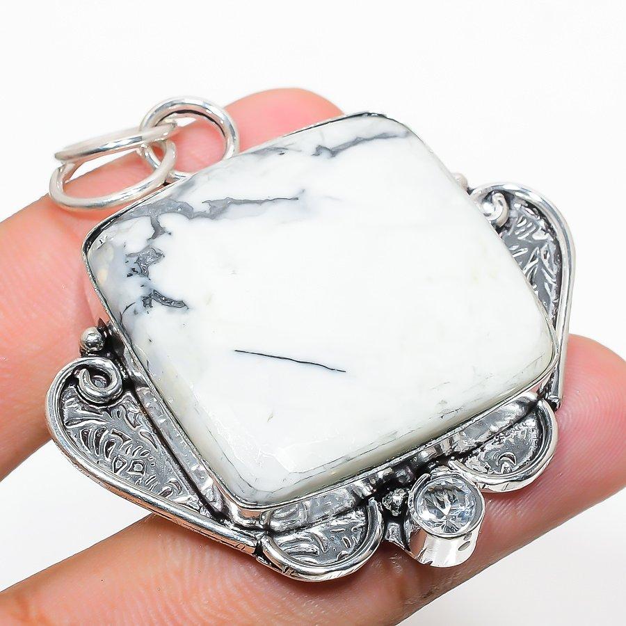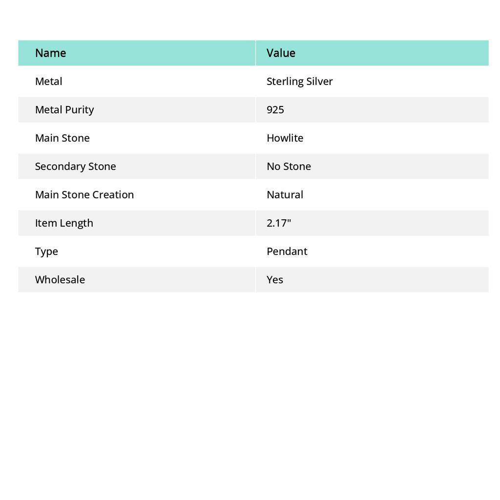 Хоулит Яшма Ручной работы Ювелирная подвеска из стерлингового серебра 925 пробы 2,17"