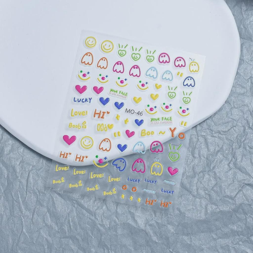 Наклейки для дизайна ногтей в стиле «Допамин»: Рельефные буквы, цифры и милые узоры