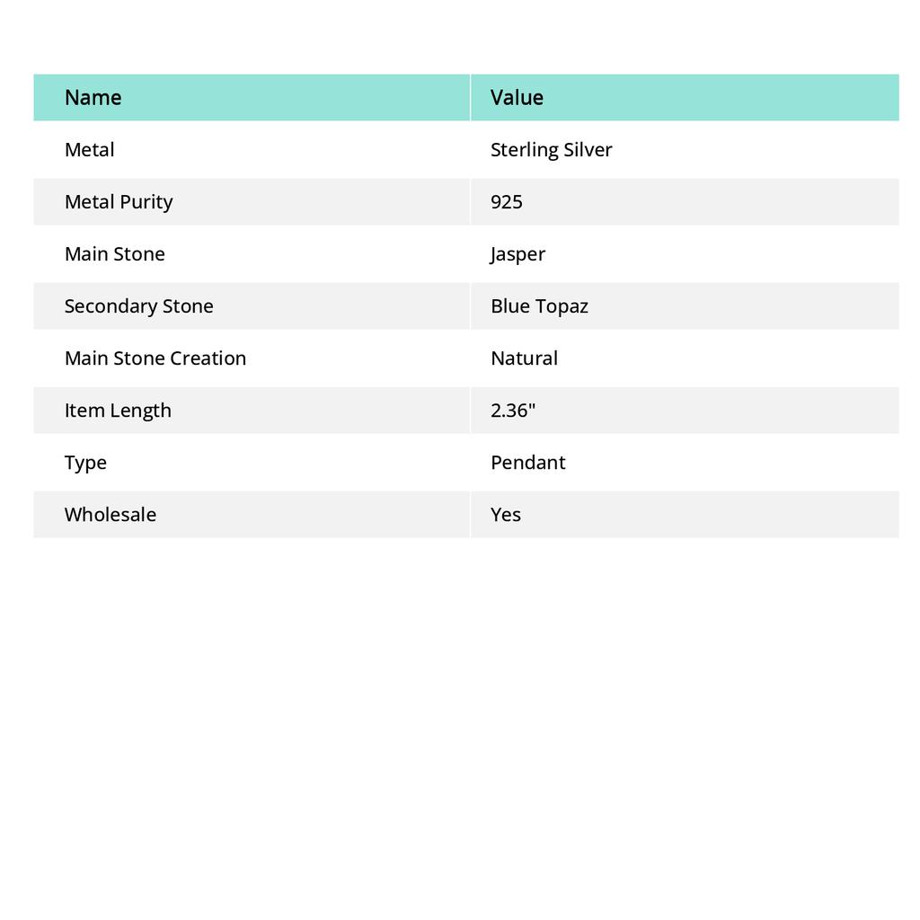 Далматиновая яшма, голубой топаз, ювелирная подвеска из стерлингового серебра 925 пробы, 2,36"