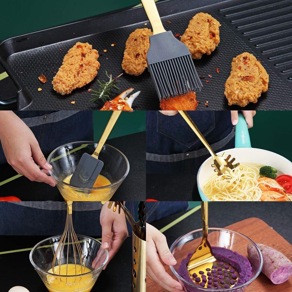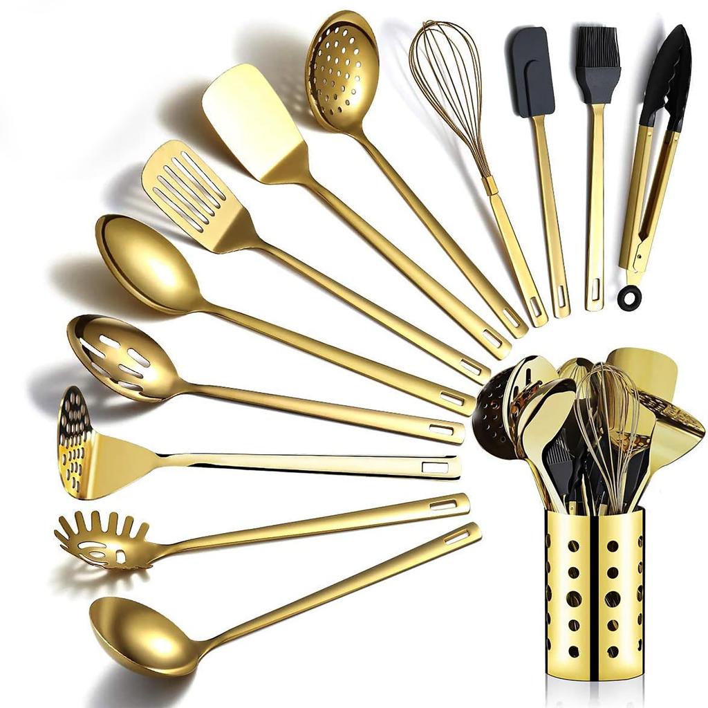 Набор кухонных принадлежностей Evanda из 13 золотых изделий из нержавеющей стали с титановым покрытием, кухонные принадлежности, принадлежности для выпечки, лопатка для пасты, лопатка