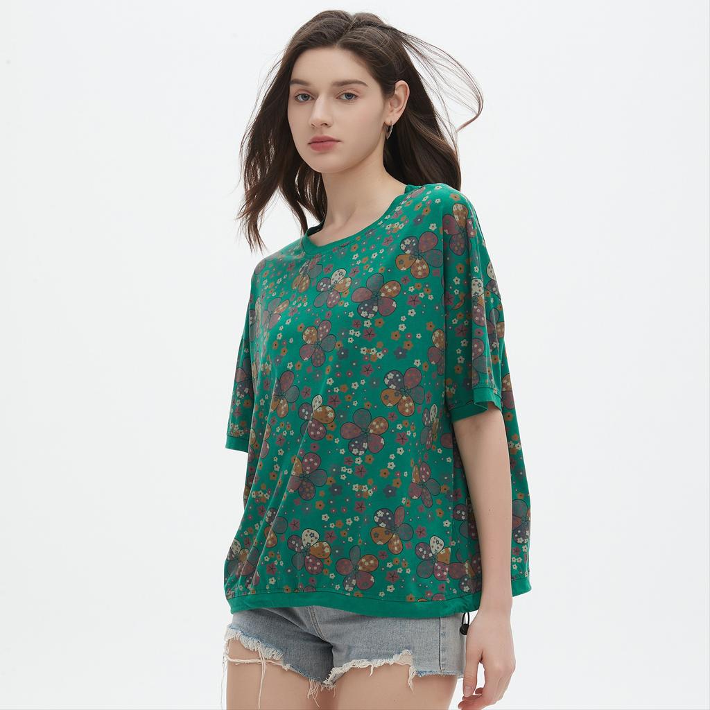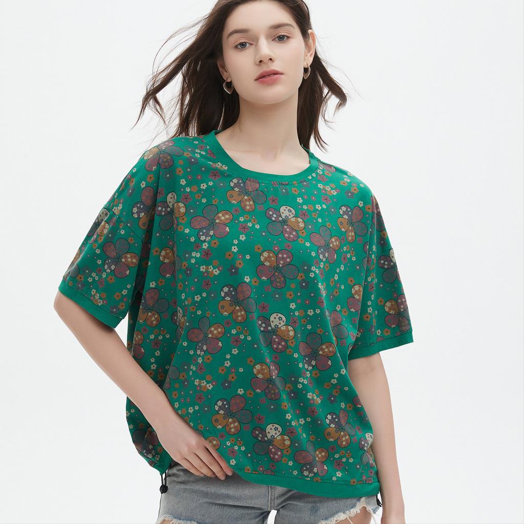 Dimanaf 2025 Летняя футболка женская с принтом букв асимметричная с коротким рукавом свободная зеленая футболка черная