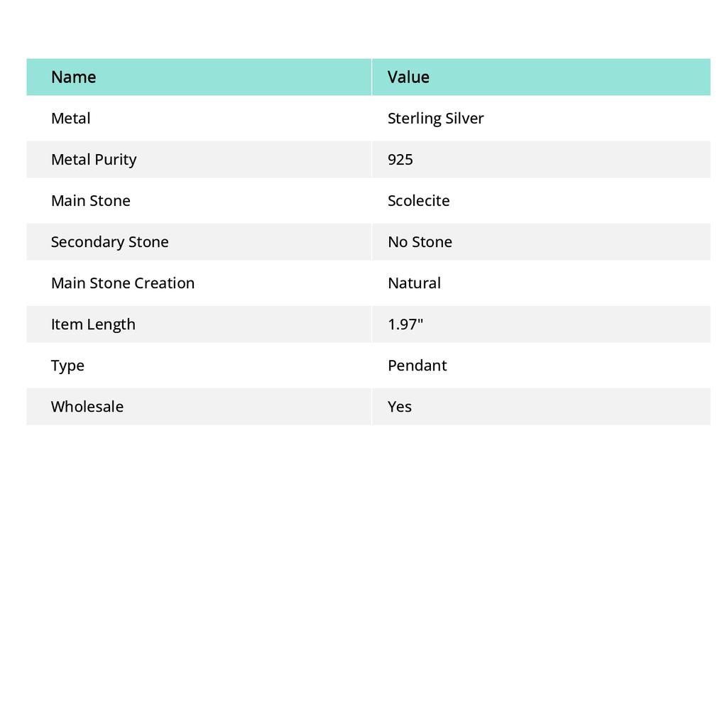 Оранжевый Сколецит Ручной работы 925 Стерлинговое Серебро Подарок Ювелирное Украшение Подвеска 1.97"
