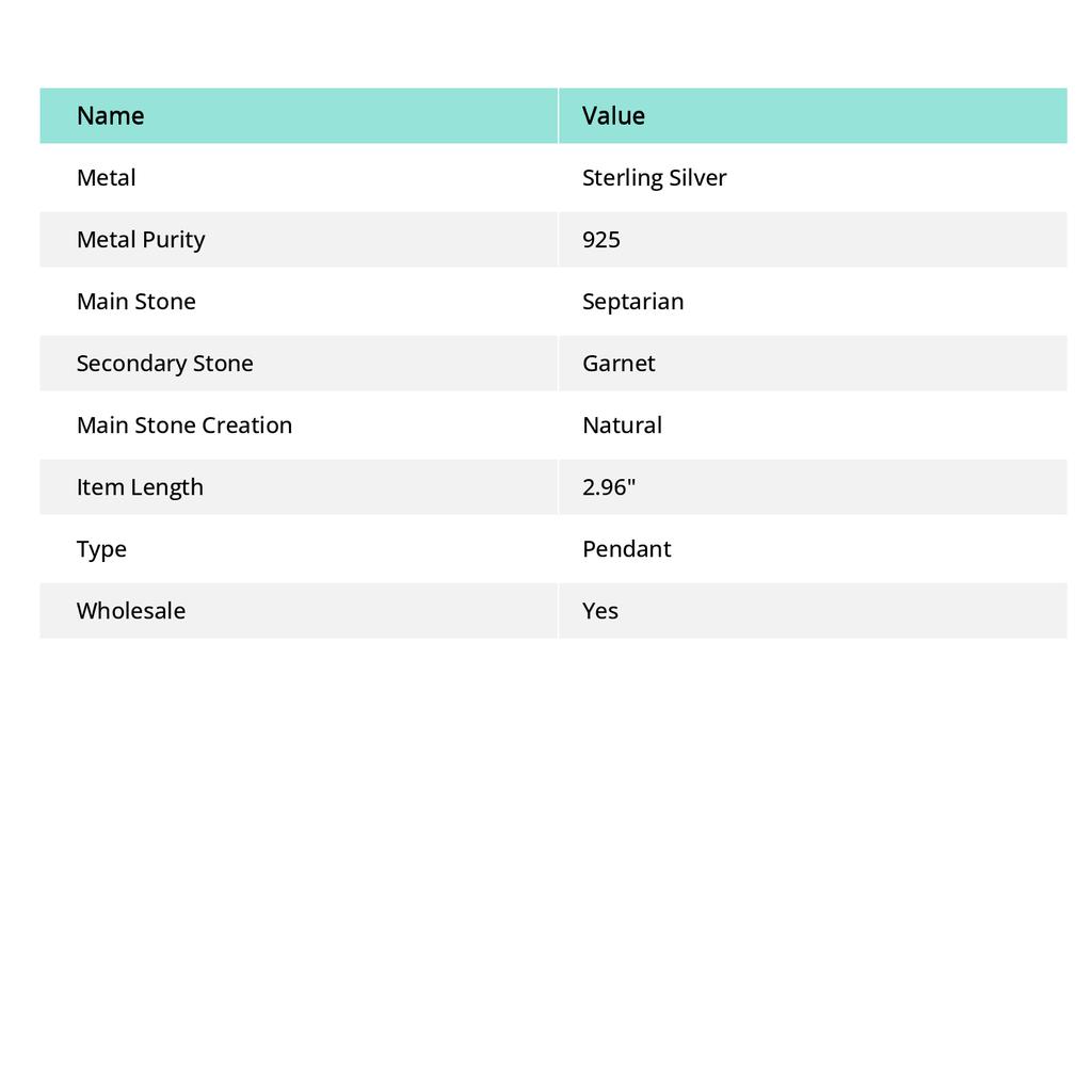 Септарианский камень, Гранат 925 стерлинговое серебро Ювелирная подвеска 2,96"