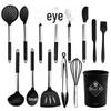 Набор кухонных принадлежностей из силикона, 13 предметов: Лопатки и ложки для готовки и выпечки с ведром для хранения