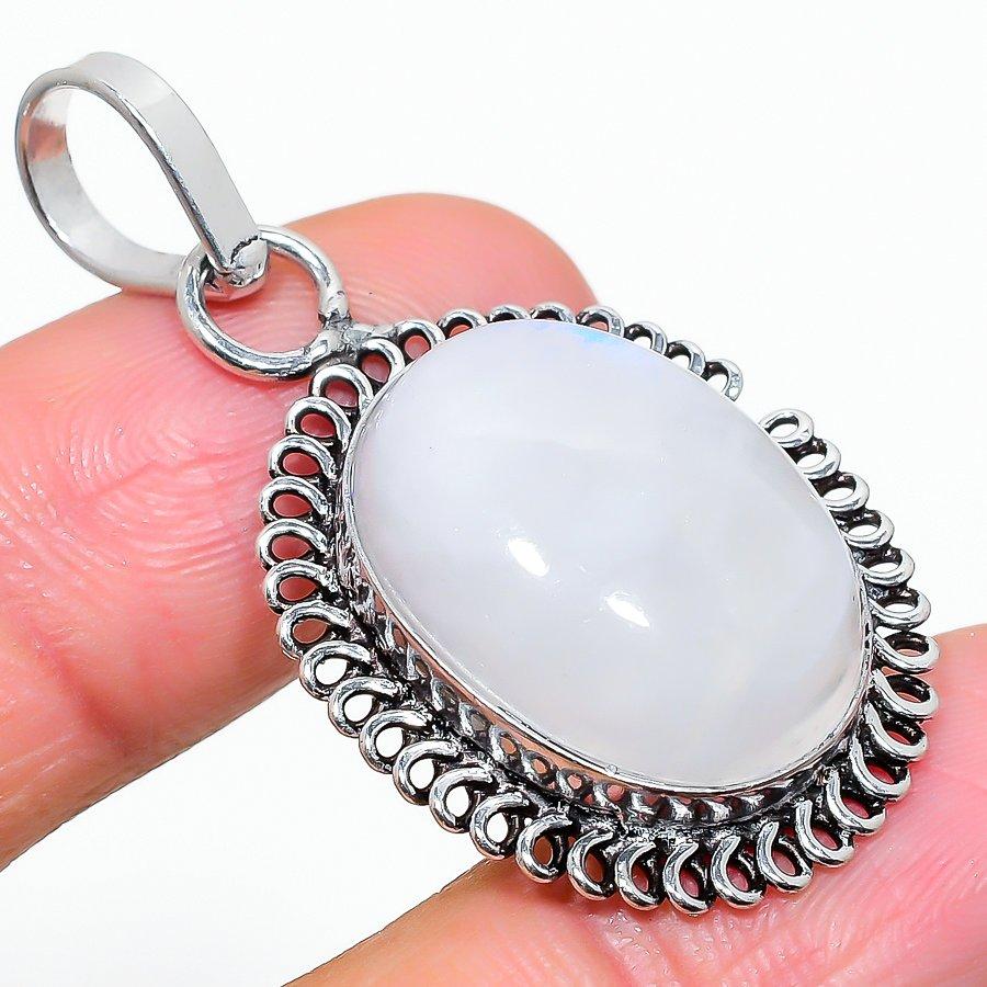 Подвеска-подвеска из серебра 925 пробы с радужным лунным камнем, ручная работа, 1,77 дюйма
