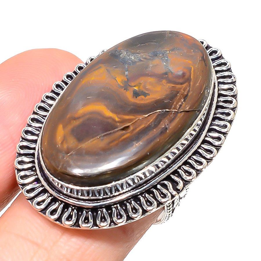 Ископаемое с трещинами грязи Ручная работа 925 стерлинговое серебро Ювелирное кольцо Размер 8 F3o12 — купить товар онлайн с бесплатной доставкой по всему миру!