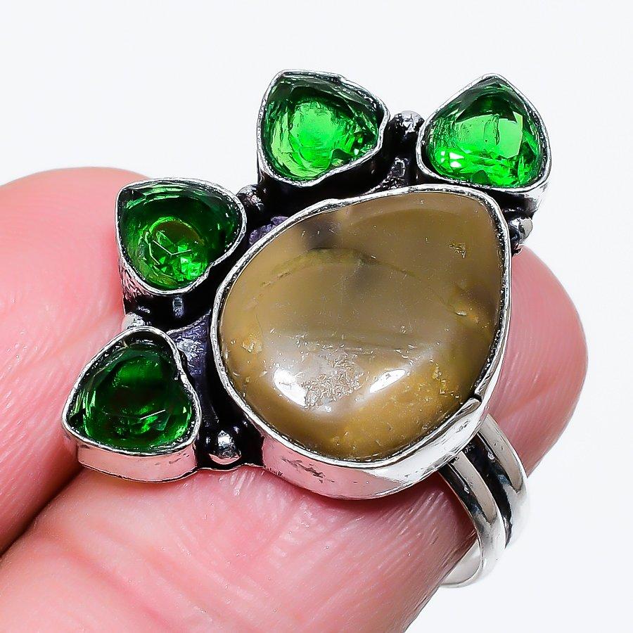 Императорская яшма,Диопсид Серебро 925 пробы Ювелирное кольцо Размер 7.5 w3R75