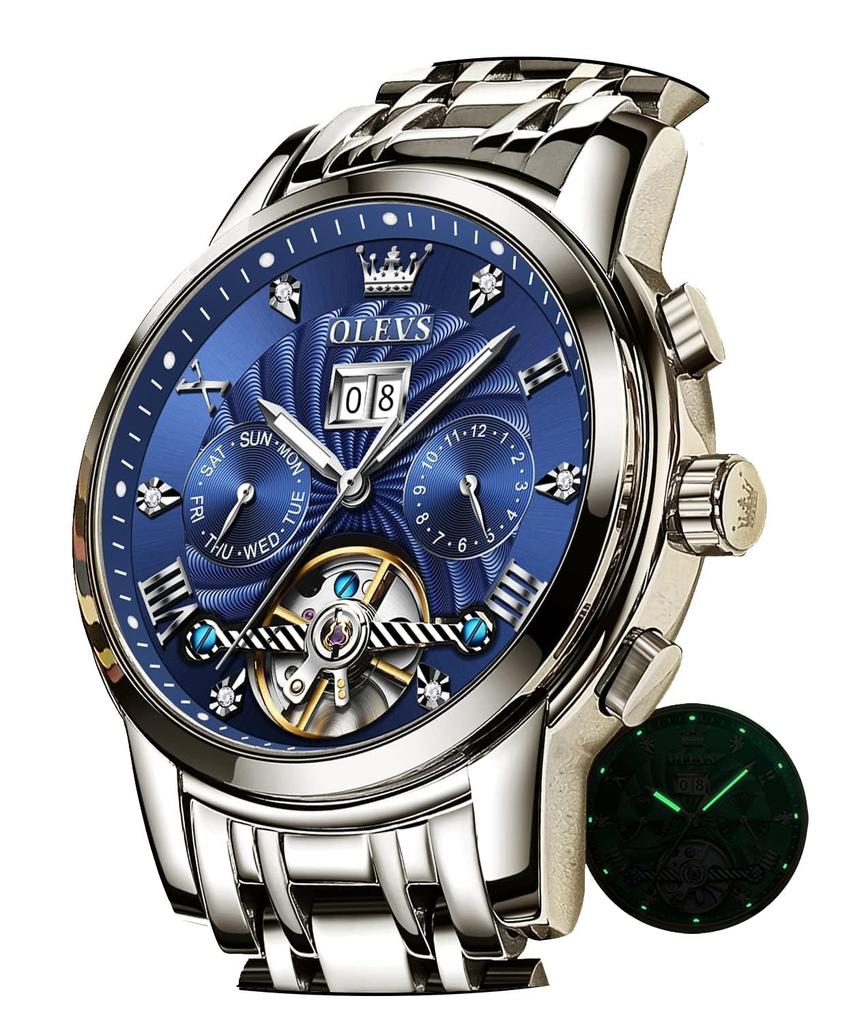 OLEVS Популярные Синие Автоматические Часы Скелетон Крутые Стильные Наручные Часы Светящиеся Календарь Дата Водонепроницаемые Синие Мужские — купить товар онлайн с бесплатной доставкой до всему миру!