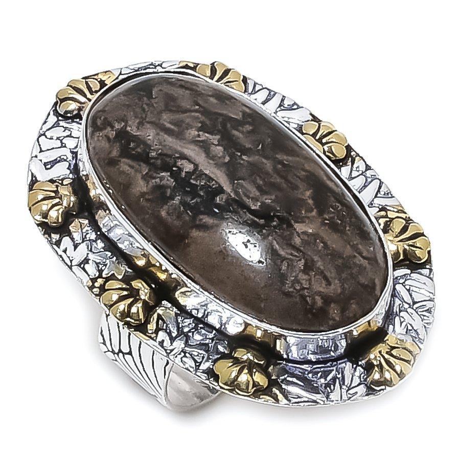 Африканский мох 925 стерлинговое серебро двухцветное ювелирное кольцо размер 8.5 m6W09
