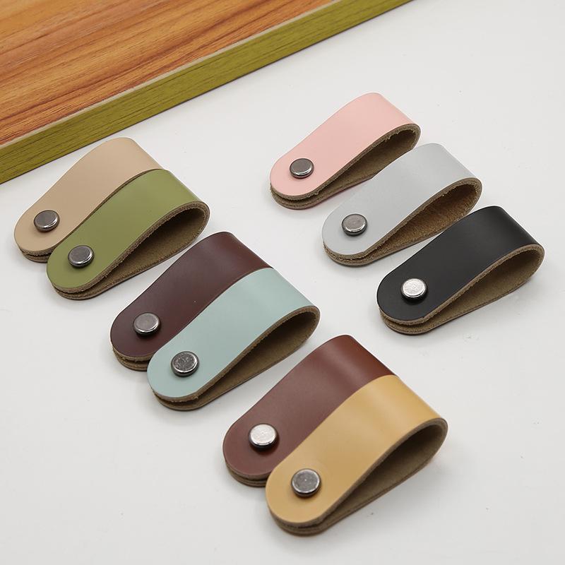 Кожаная ручка для дверцы шкафа и ящика, одно отверстие, вставки из чистой меди