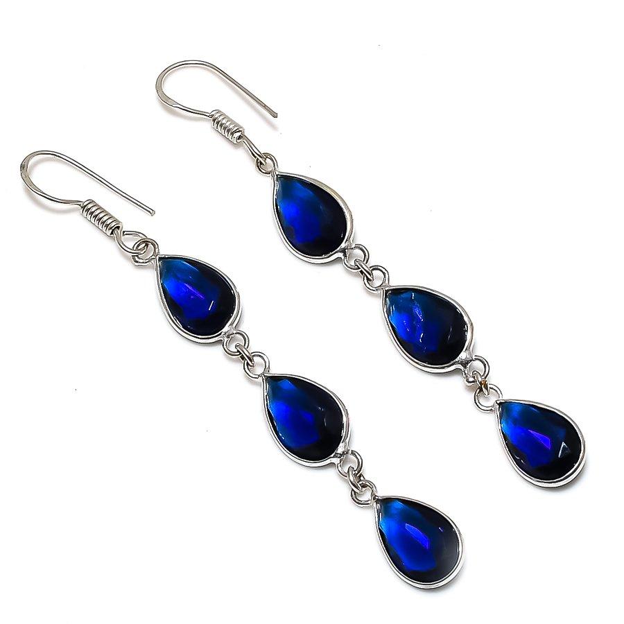 Лондонский голубой топаз ручной работы, ювелирное изделие из стерлингового серебра 925 пробы, серьга 2,88" D1o01