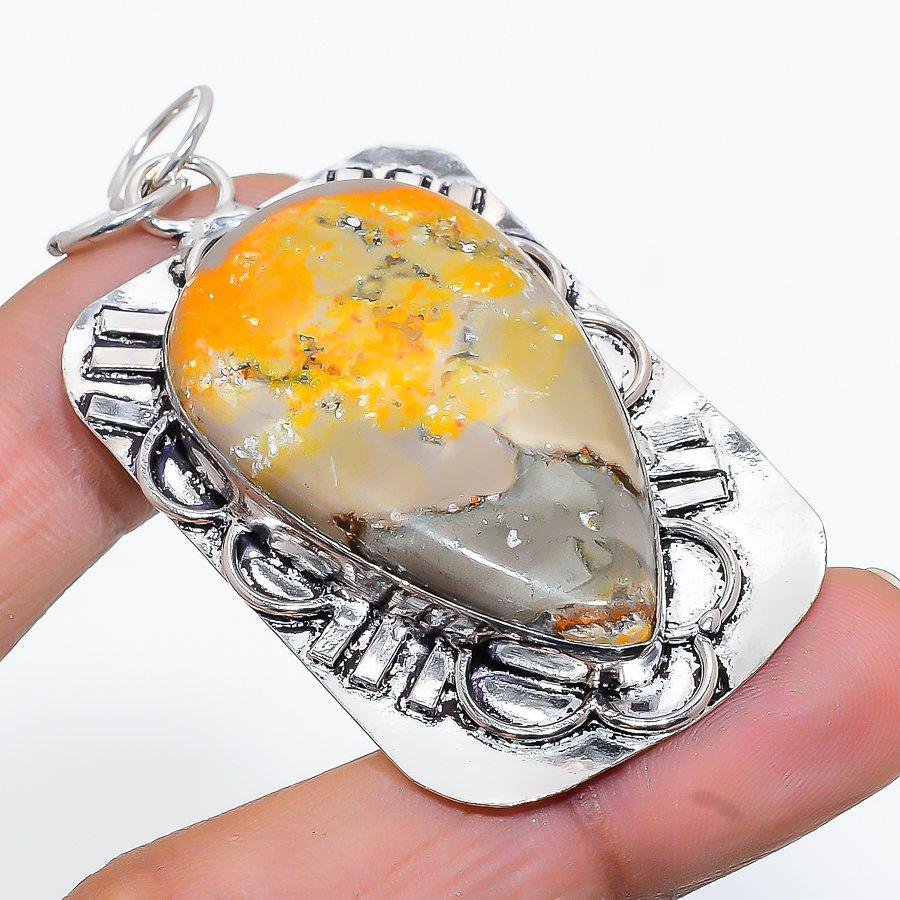 Джаспер Шмель Ручная работа 925 Стерлинговое серебро Подарочное ювелирное изделие Подвеска 2,48"