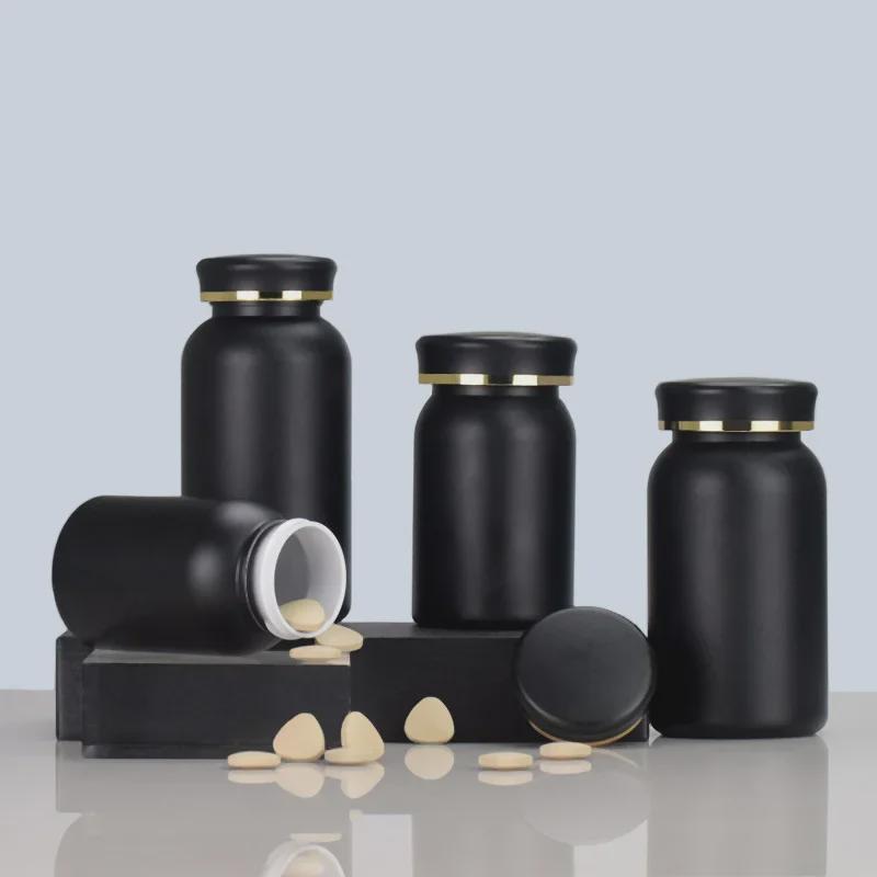 Высококачественная матовая черная ПЭТ-бутылка для лекарств объемом 100 мл