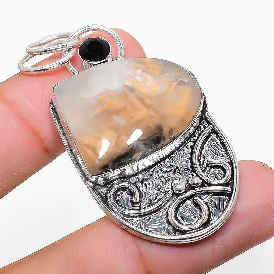 Russian Dendritic, Spinel 925 Sterling Silver Jewelry Pendant 2.21" Y3t53