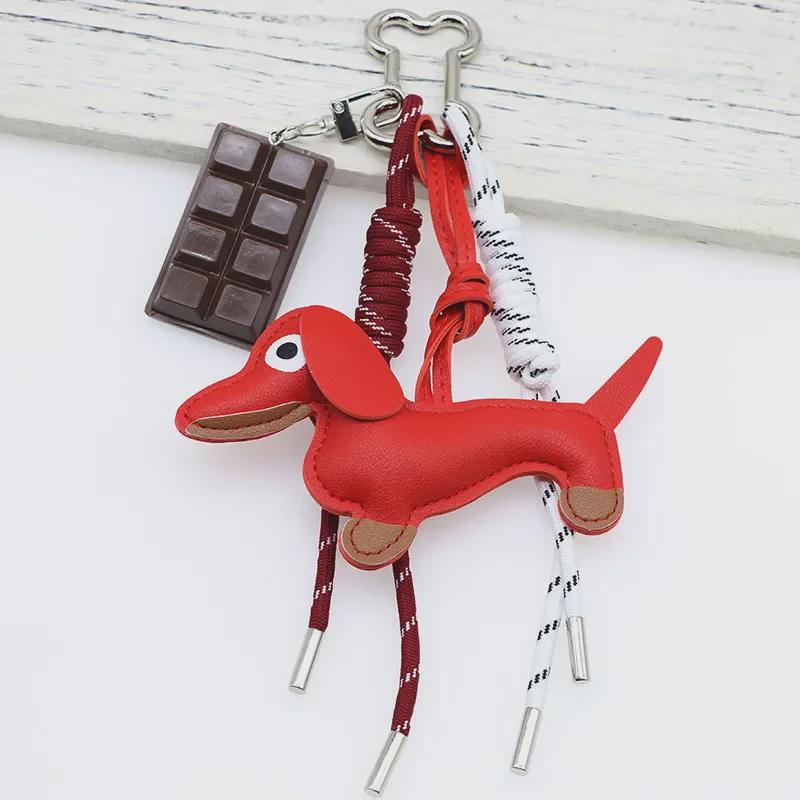 Подвеска из кожи таксы: Милый брелок в виде щенка и украшение для машины для пар.