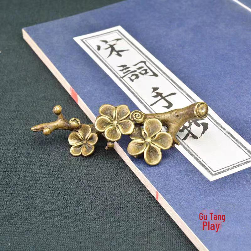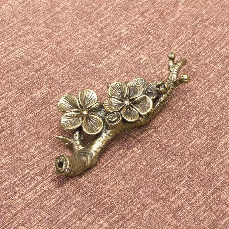 Ладан и держатель для ручки из цельной латуни «Цветок сливы» — ретро-патинированный медный орнамент