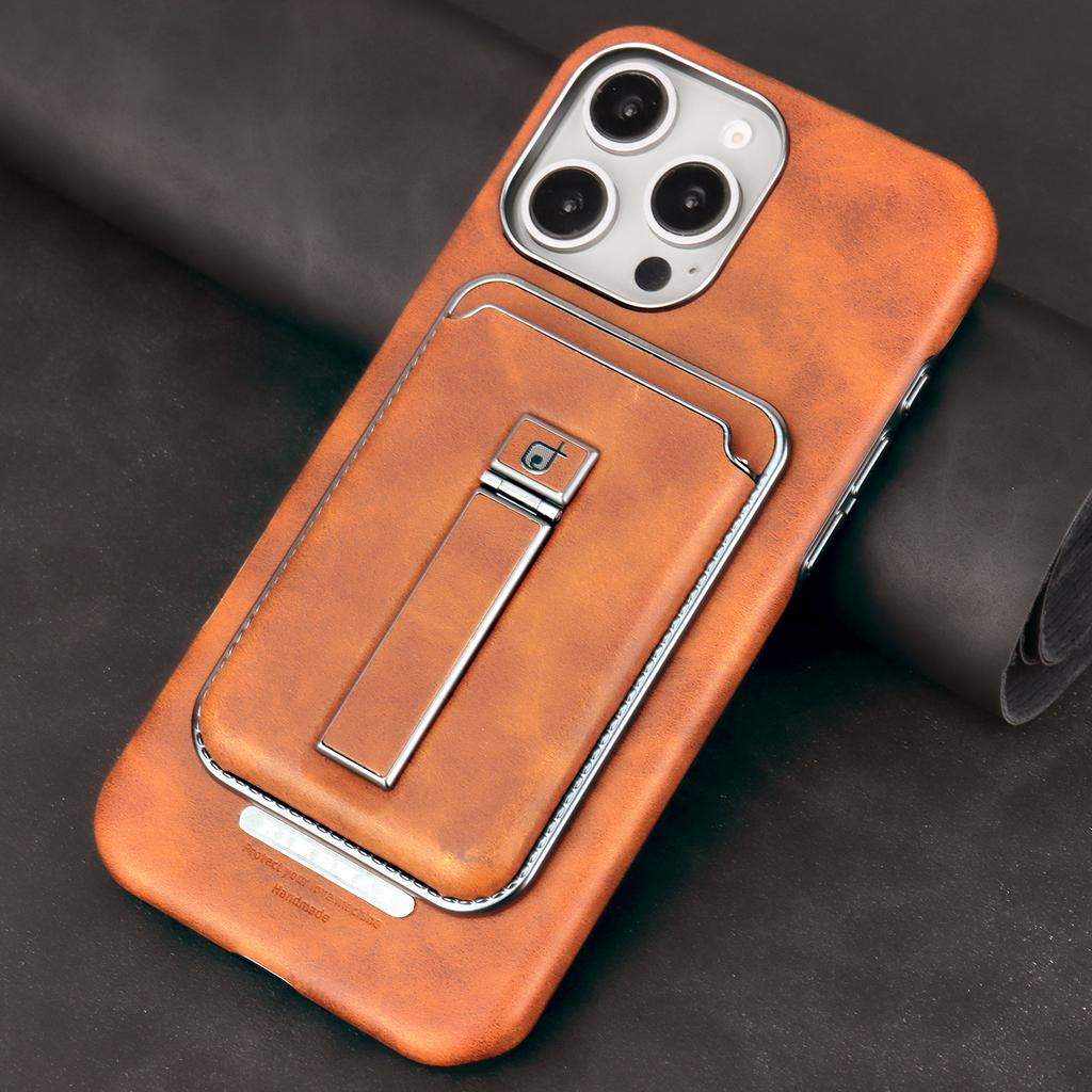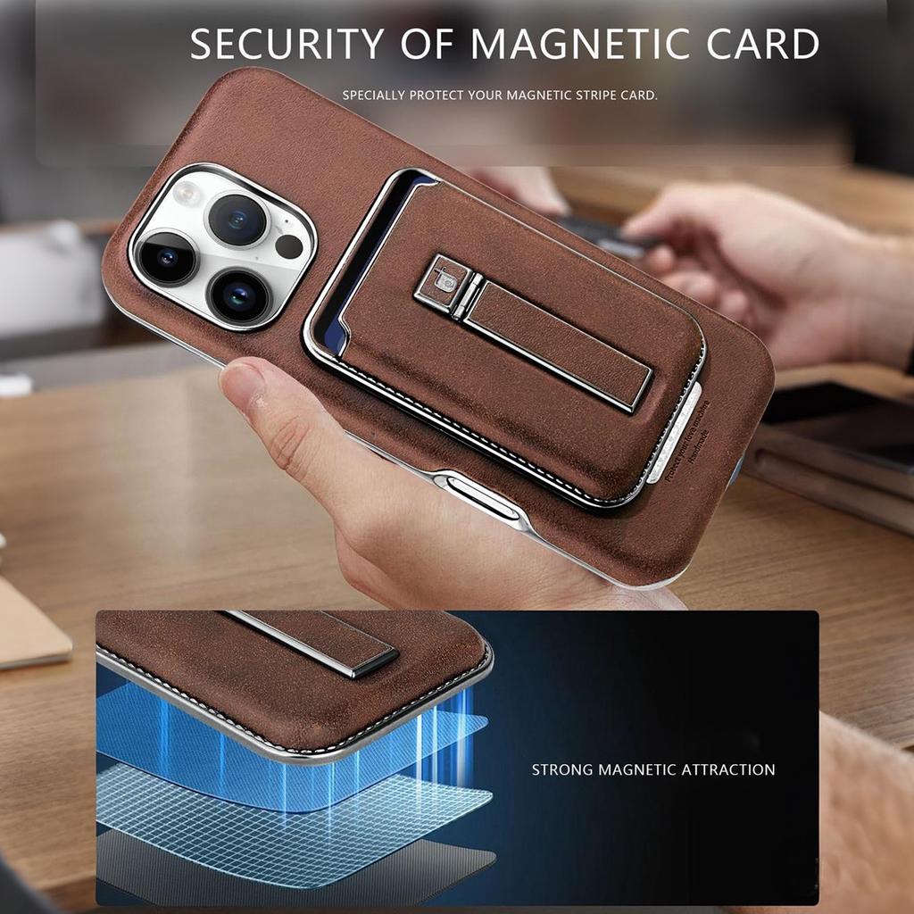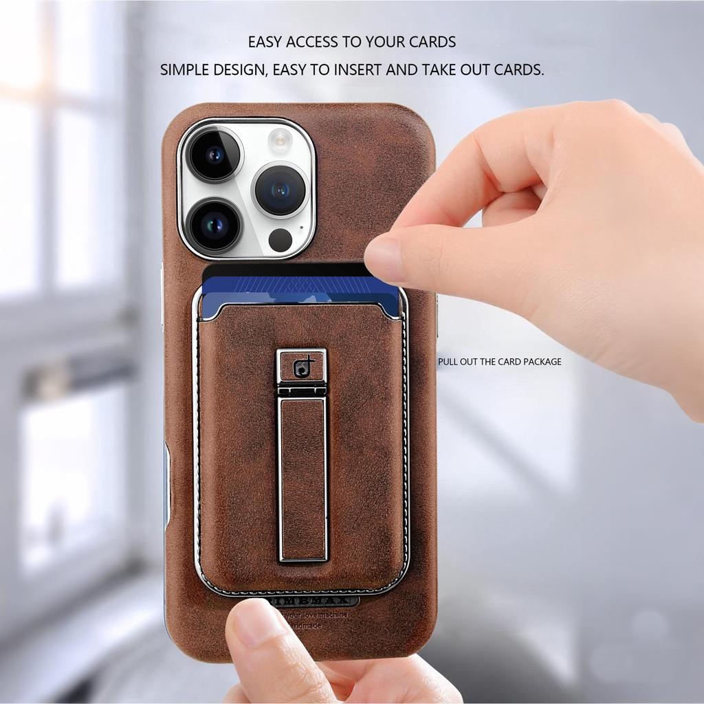2 в 1 съемный магнитный держатель для карт, роскошный кожаный чехол с металлической подставкой, защитная откидная задняя крышка для iPhone 16 15 14 13 12 Pro Max 16Pro 15Pro