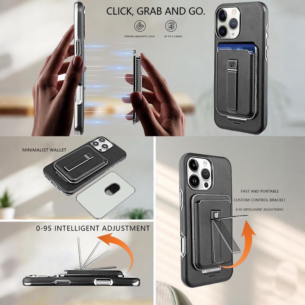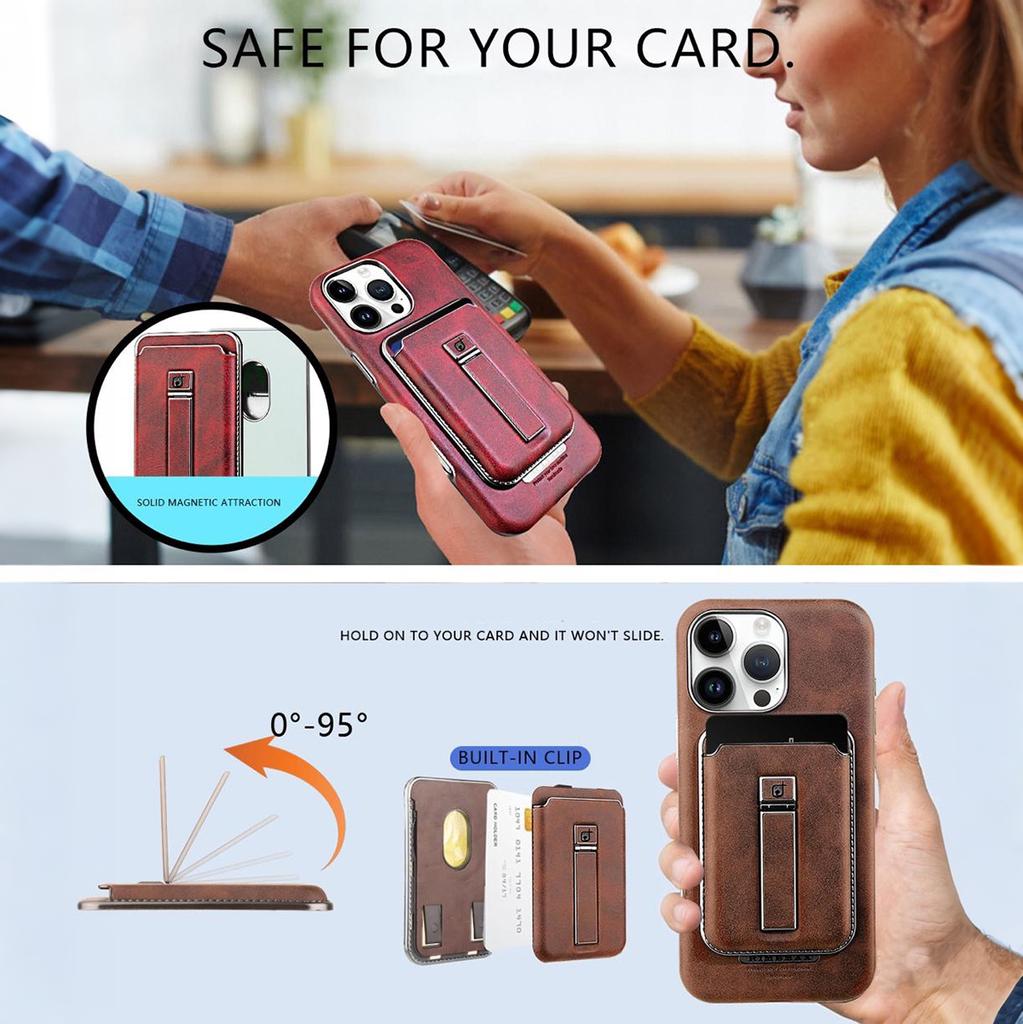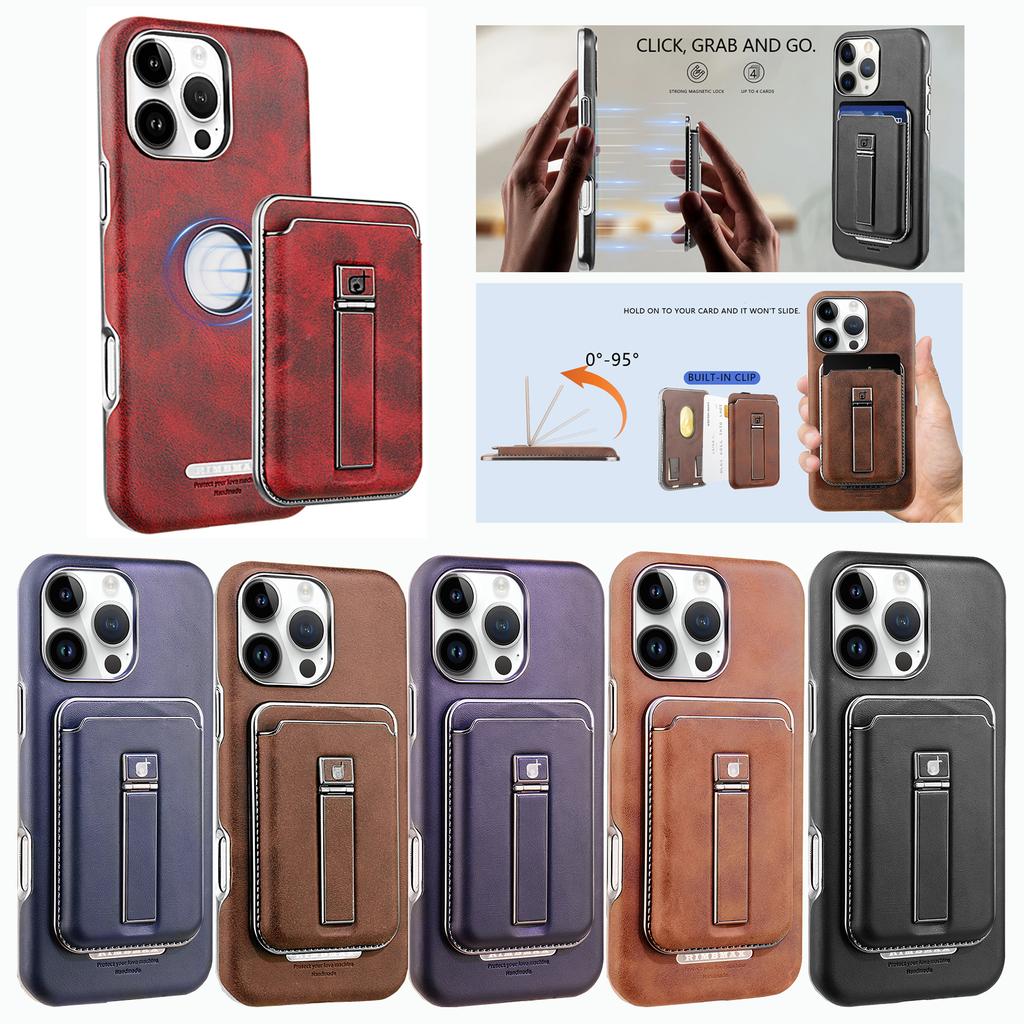 2 в 1 съемный магнитный держатель для карт, роскошный кожаный чехол с металлической подставкой, защитная откидная задняя крышка для iPhone 16 15 14 13 12 Pro Max 16Pro 15Pro