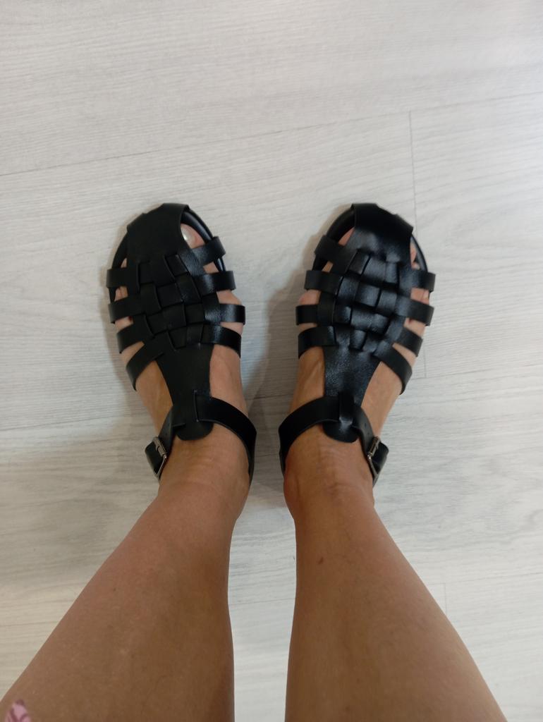 Сандалии, не соответствуют фото, на фото сделана окантовка белыми нитками, конечно без окантовки они по другому смотрятся. Вообще, мягкие и удобные, ношу 42, взяла 43, свободные, налезли на мои косточки на ногах. Интересно сколько их буду носить