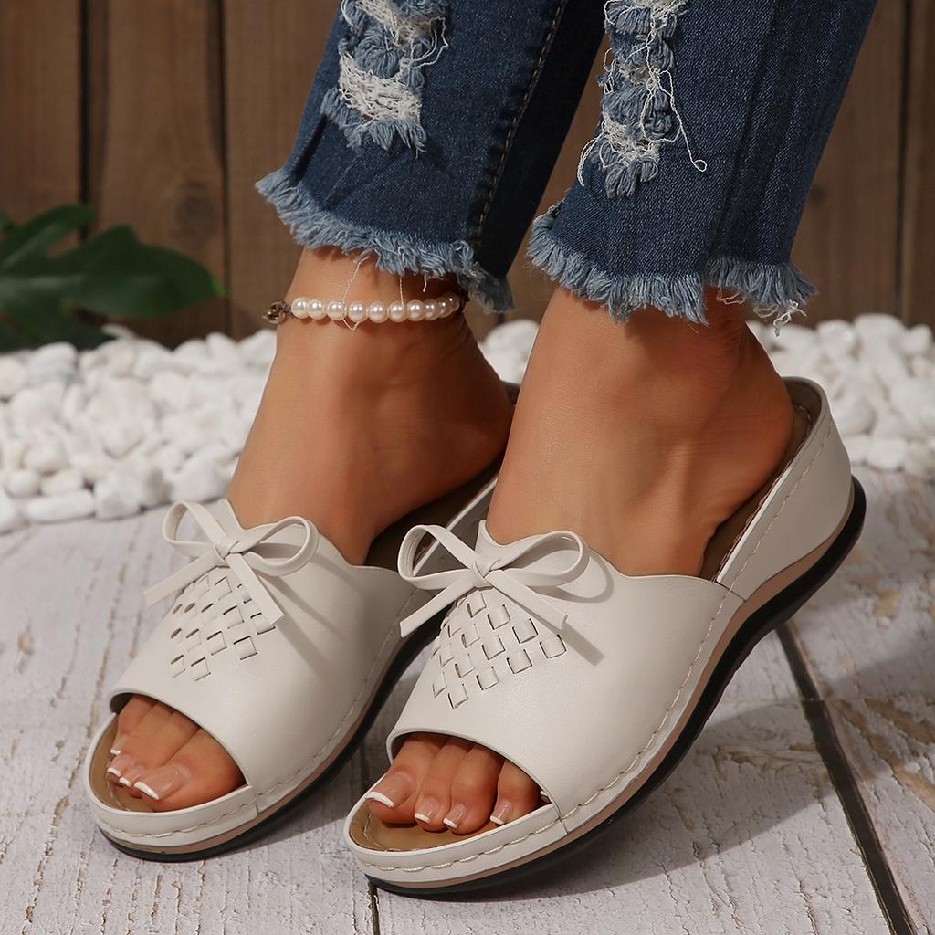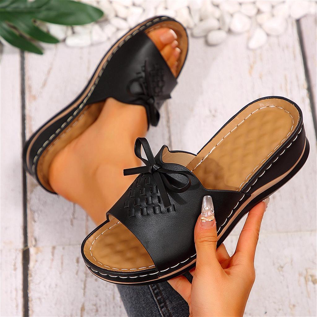 Летние женские тапочки на толстой подошве, большого размера, широкая полоска, с прямым покатым каблуком, нескользящие и удобные тапочки