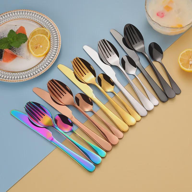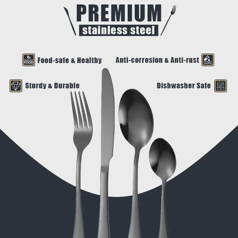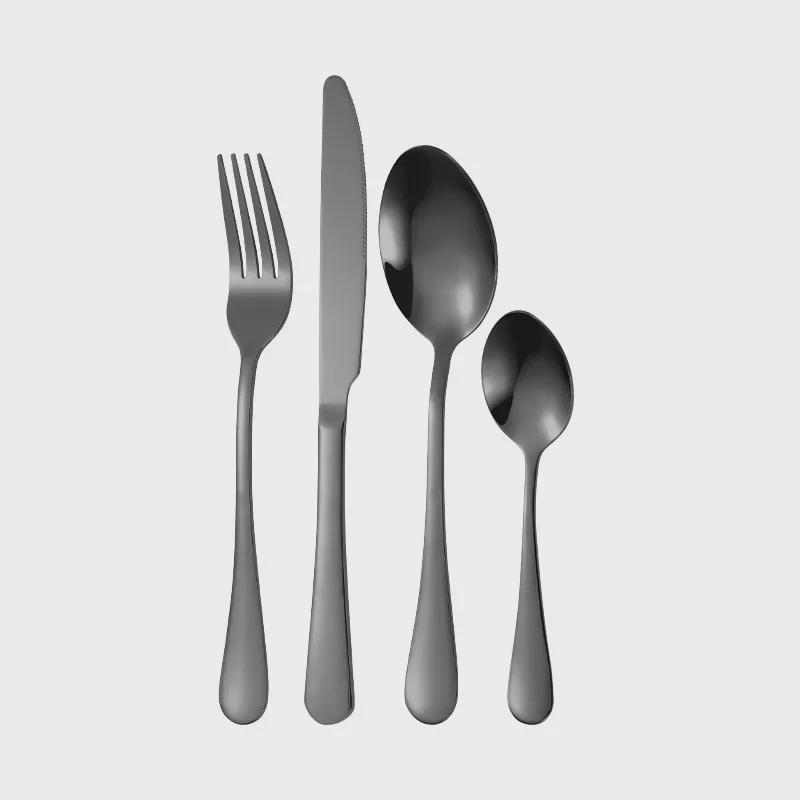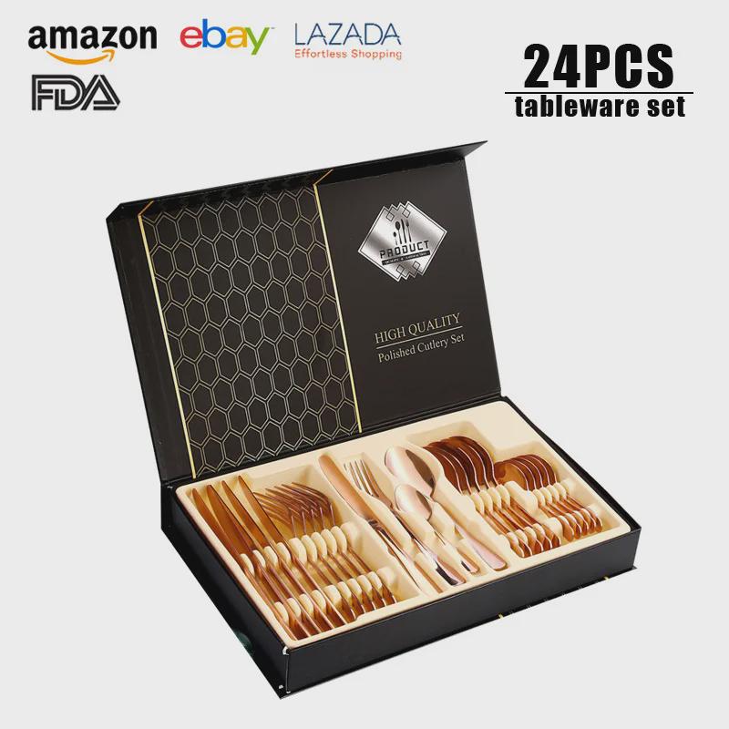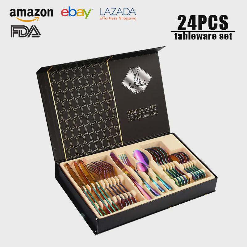Набор столовых приборов из 24 предметов из нержавеющей стали с титановым покрытием: Нож, вилка, ложка в коробке с откидной крышкой (Серия 1010)