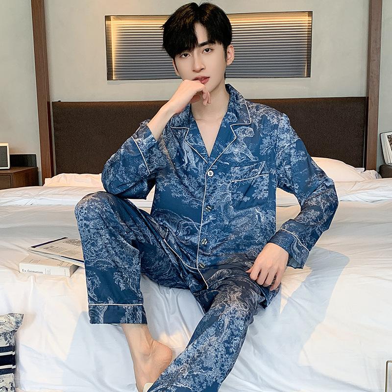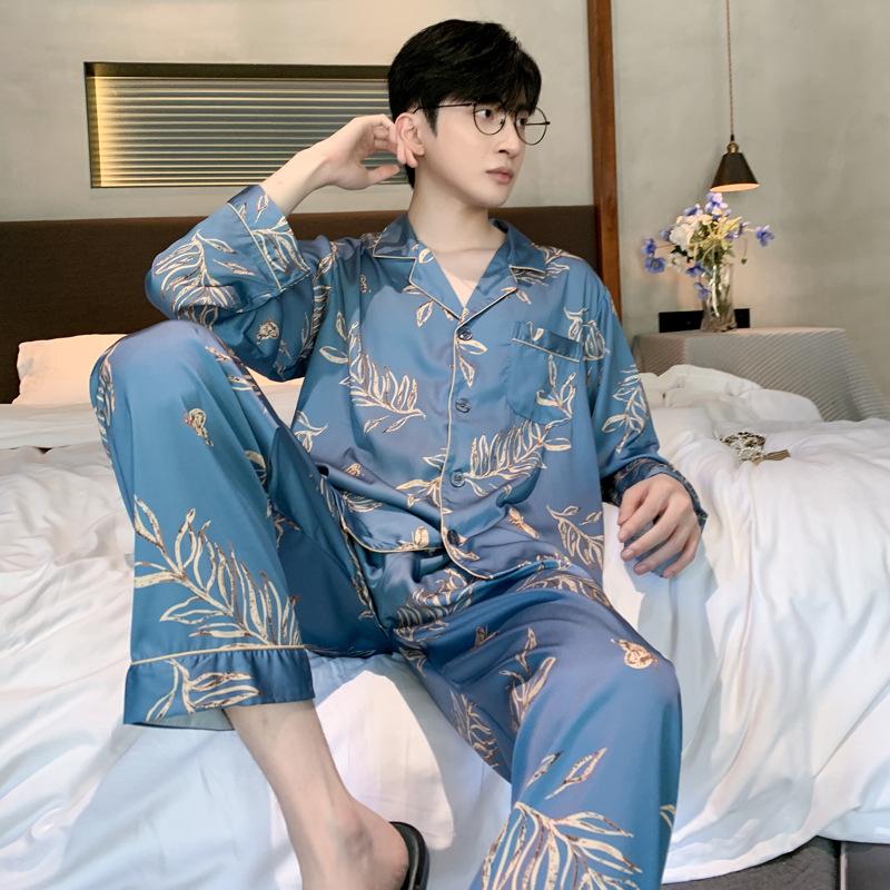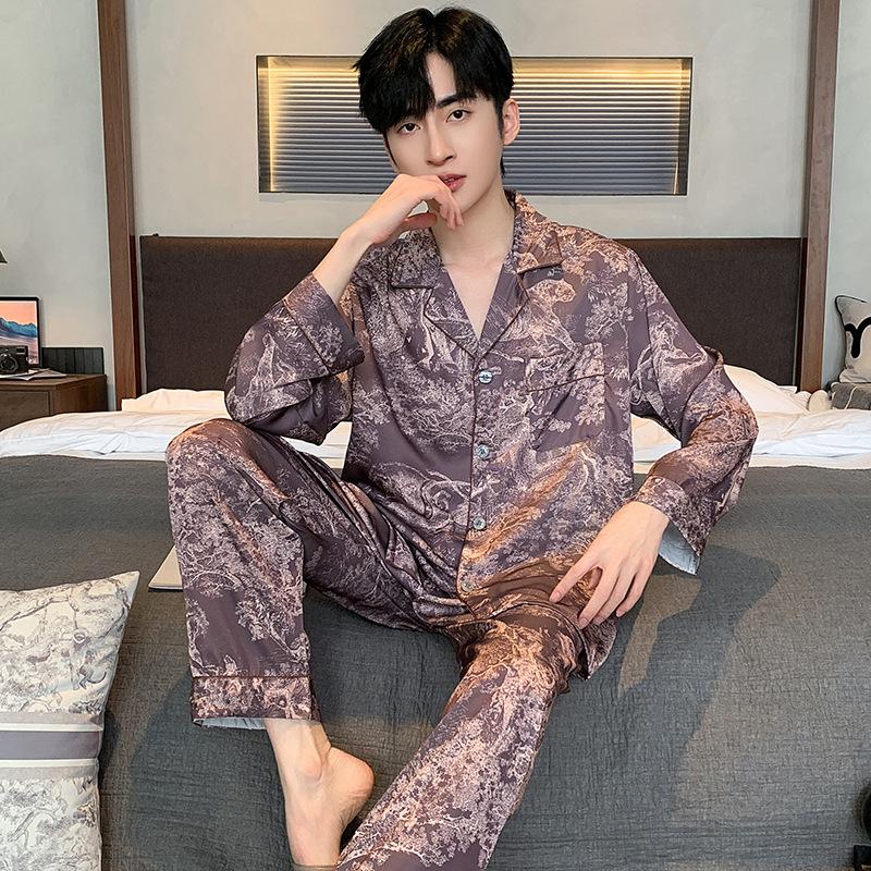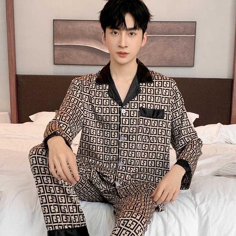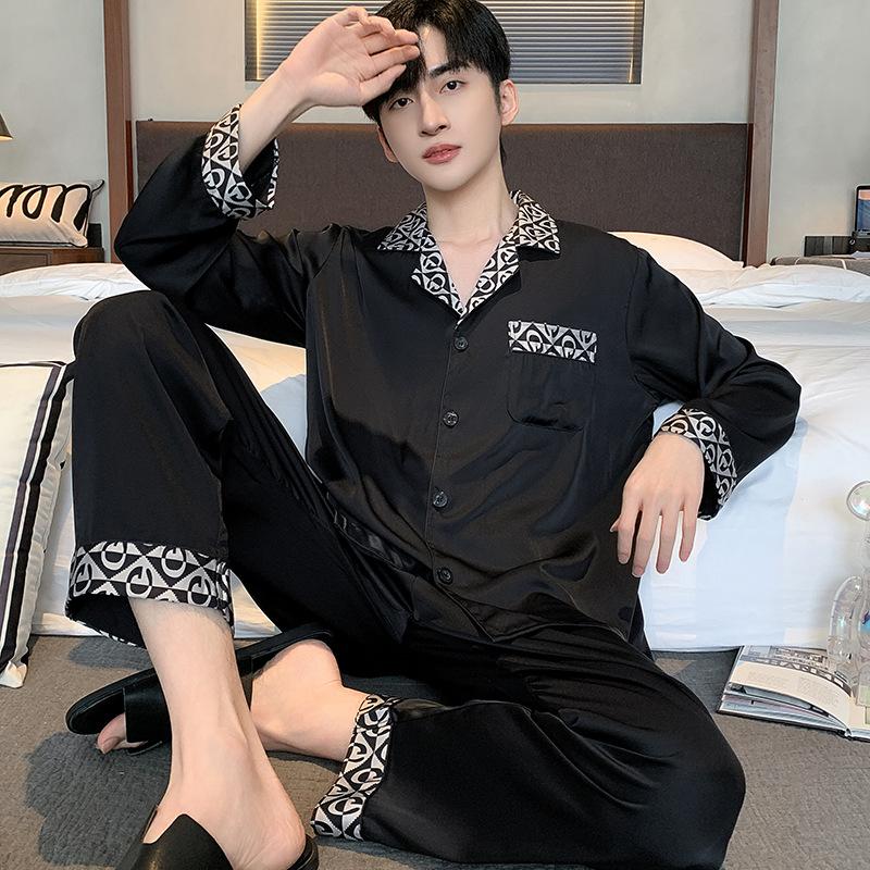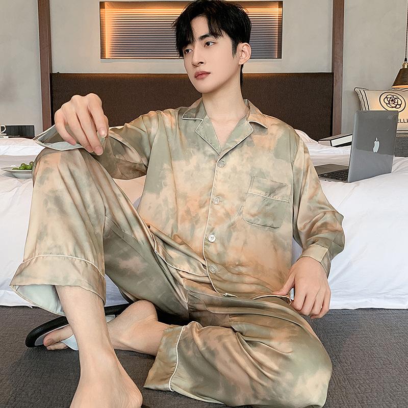 Пижамный костюм из ледяного шелка для мужчин, весна-лето, модная одежда для отдыха с коротким рукавом из полиэстера, мужская одежда для сна, домашняя одежда для мужчин