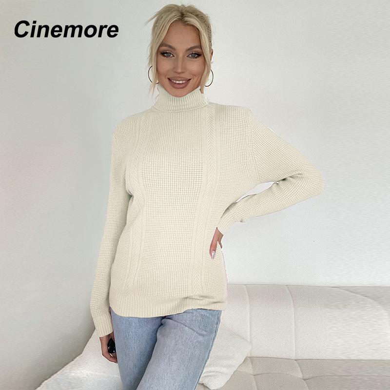 Cinemore Весна Осень Женский свитер Однотонный Оверсайз Повседневный Пуловеры Теплый Базовый Топ с Длинным Рукавом О-Образным Вырезом Трикотажный Джемпер Свитер