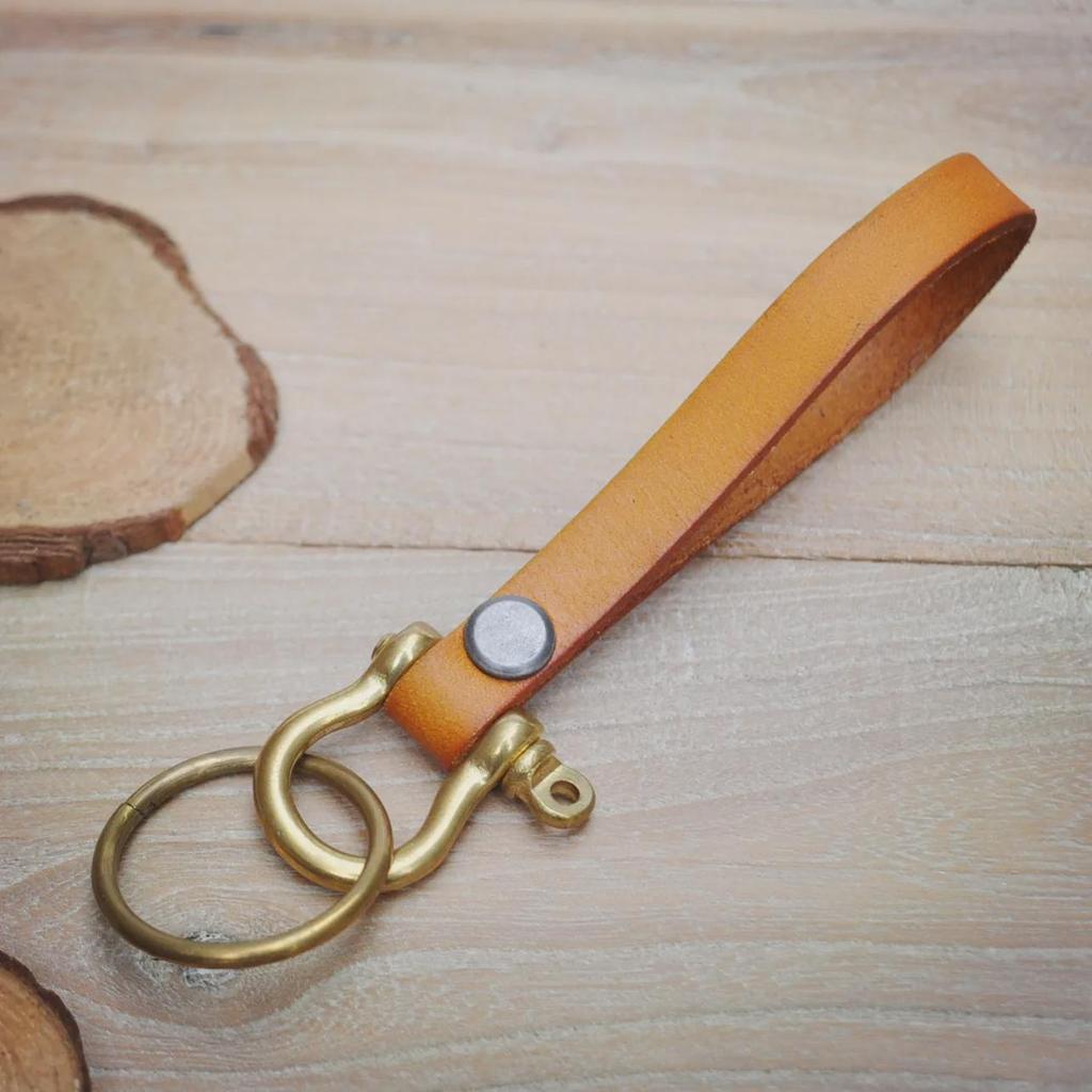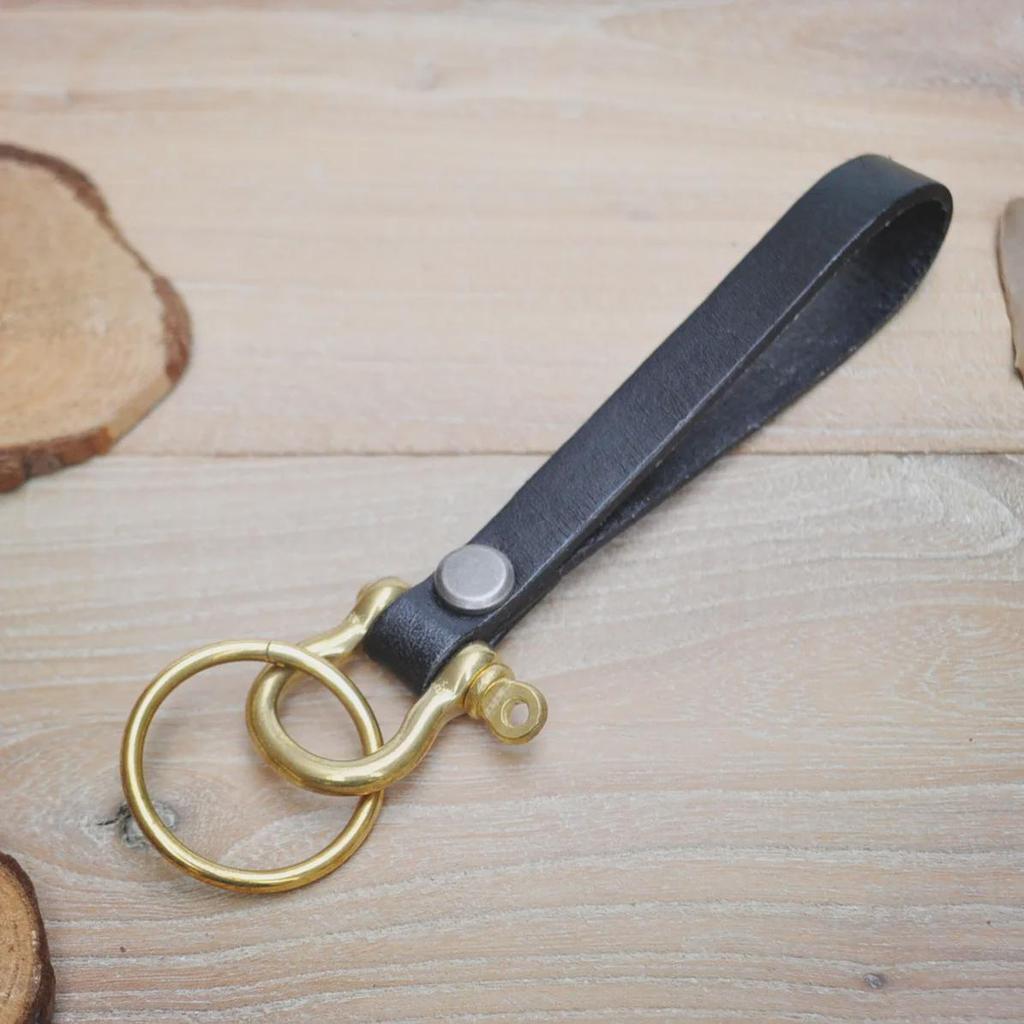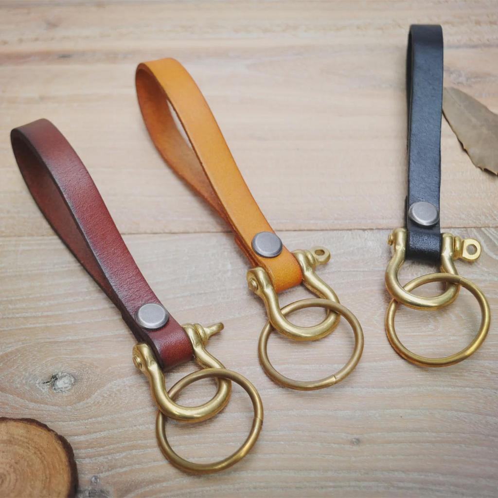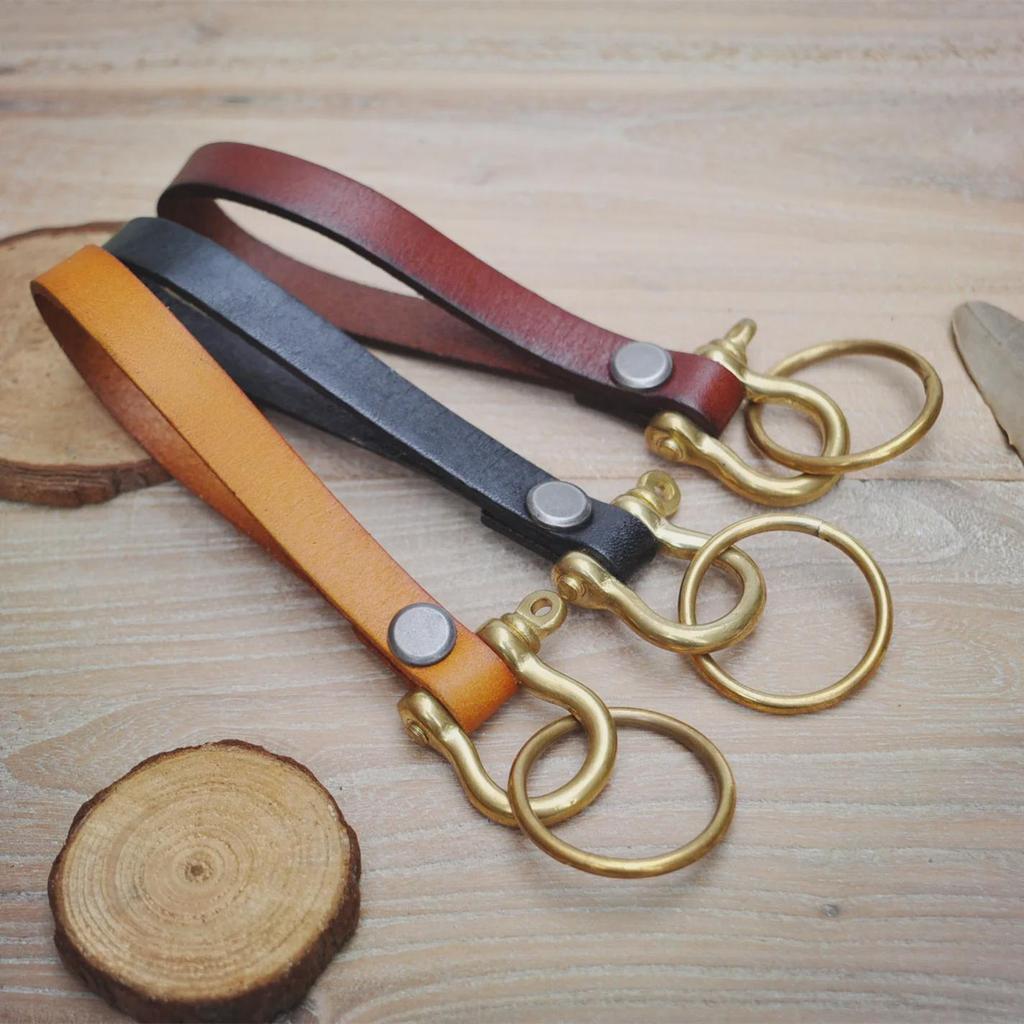 Брелок для ключей из коровьей кожи растительного дубления с латунной пряжкой в форме подковы - ретро-дизайн