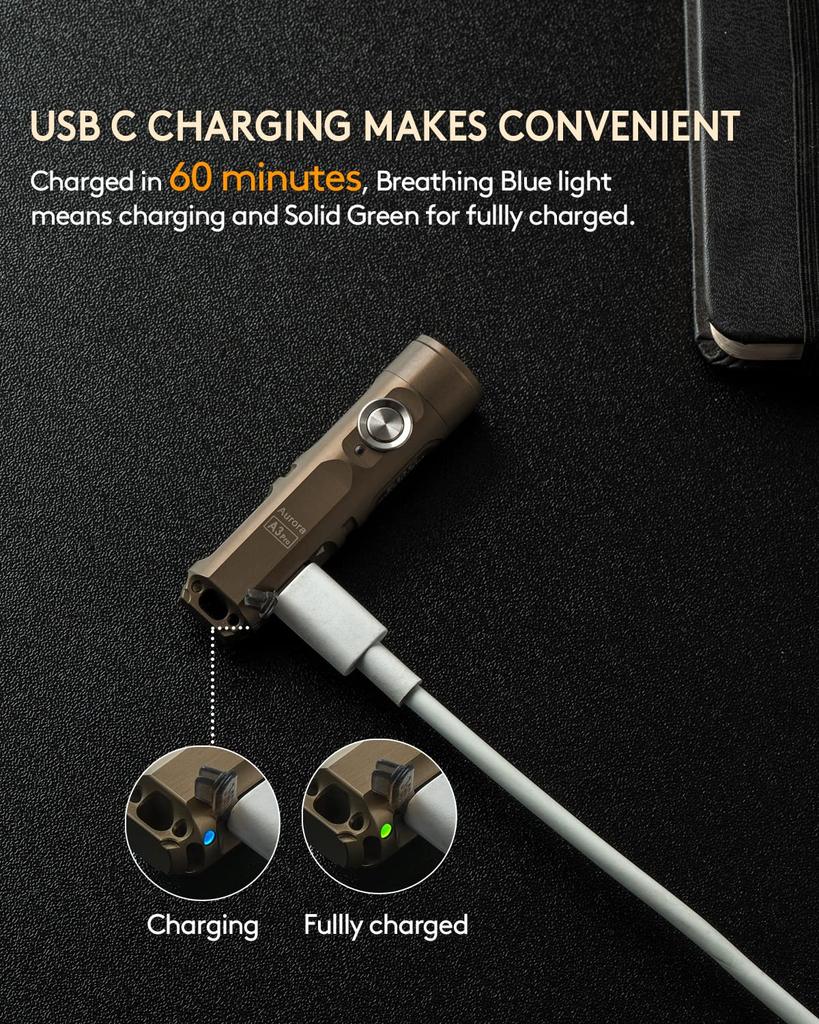 НОВАЯ ВЕРСИЯ: Aurora A3 PRO 4-го поколения имеет новый светодиод 7000K, новый отражатель, новый зарядный порт USB-C, новую заглушку USB, режим блокировки, магнитный аксессуар, все для вашего edc фонарика. (уведомление: Кабель USB-C не входит в комплект).