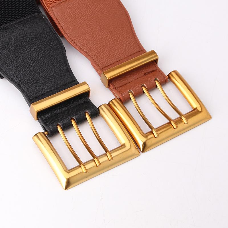 Винтажные эластичные широкие ремни, модный трехточечный однотонный пояс с пряжкой, элегантный пояс для пальто для женщин