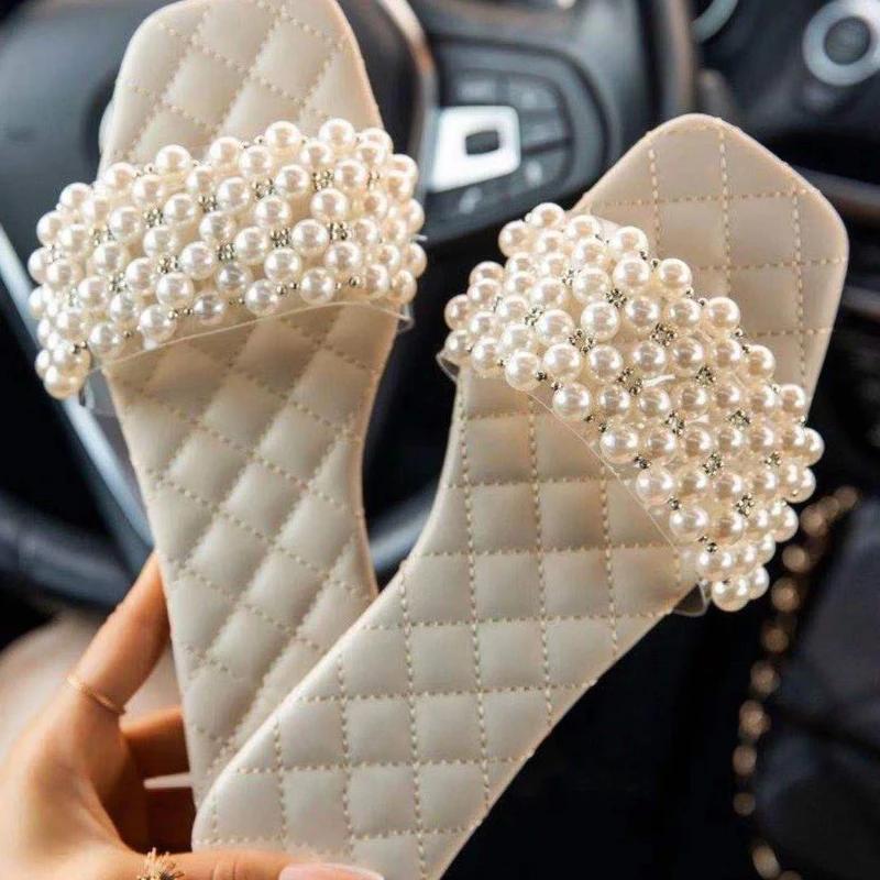 Весна и лето Новые женские жемчужные стразы женские универсальные повседневные тапочки модные однотонные туфли на плоской подошве сандалии — купить товар онлайн с бесплатной доставкой по всему миру!