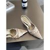 Женские босоножки на высоком каблуке. Летние новые модные женские босоножки на каблуке из черной кожи для вечеринок с острым носком и полым носком сзади.