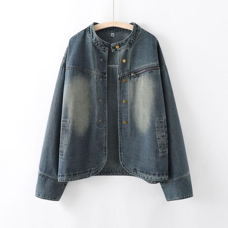 Джинсовая куртка женская весна и осень хлопковая клетчатая свободная синяя тонкая куртка повседневная универсальная удобная куртка больших размеров
