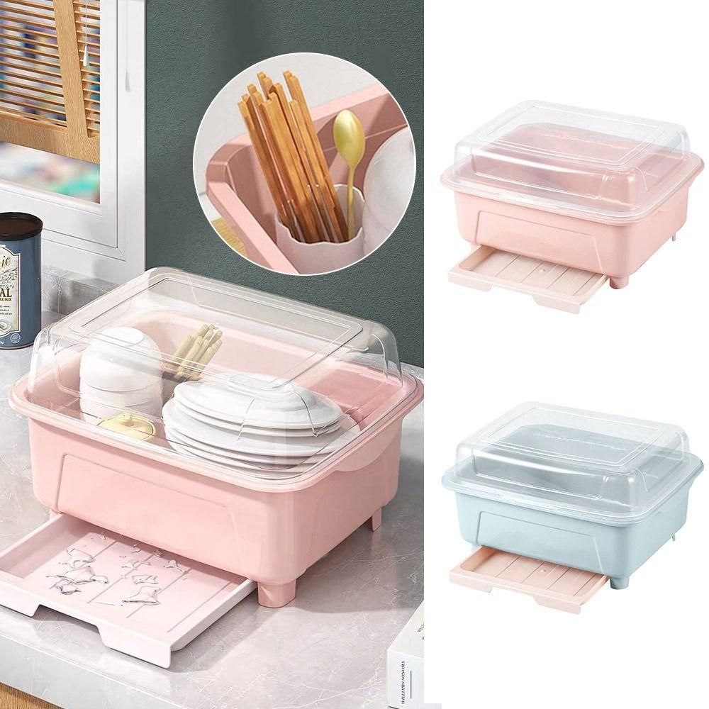 С крышкой сушилка для посуды пластиковый кухонный лоток для столовых приборов коробка для хранения посуды кухонные принадлежности — купить товар онлайн с бесплатной доставкой по всему миру!