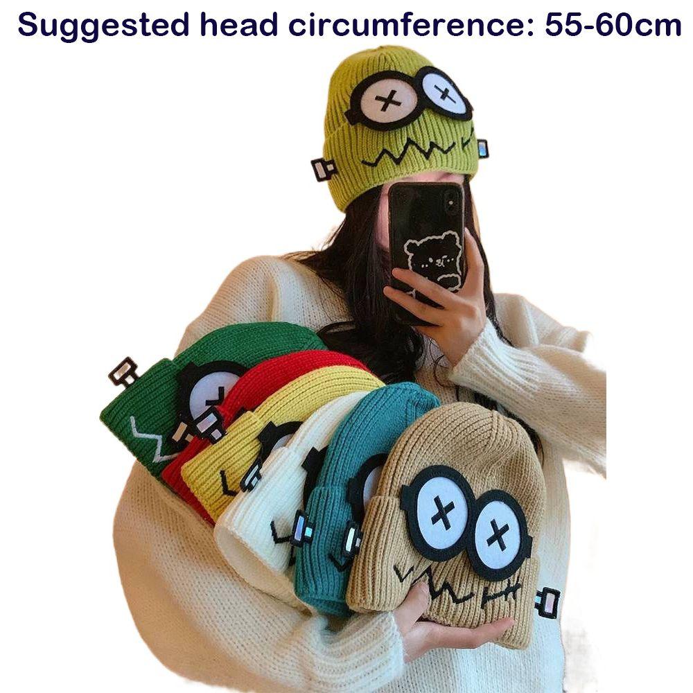 Унисекс вязаная шапка с рисунком больших глаз из мультфильма защитная шапка с манжетой высокого качества шапка-бини