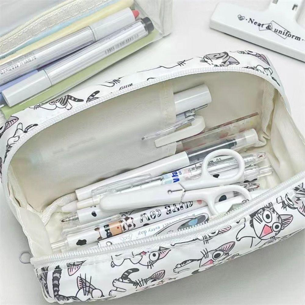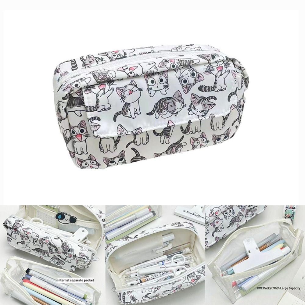 Многофункциональная сумка для ручек Милый кот Сумка для хранения канцелярских принадлежностей Портативный пенал для подарка студенту