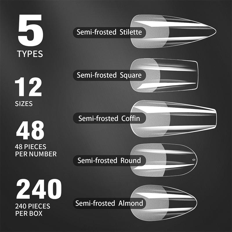Набор для дизайна ногтей «Пять в одном» с прозрачным матовым покрытием: Бесследные, свободные, удлиненные, ультратонкие накладные ногти