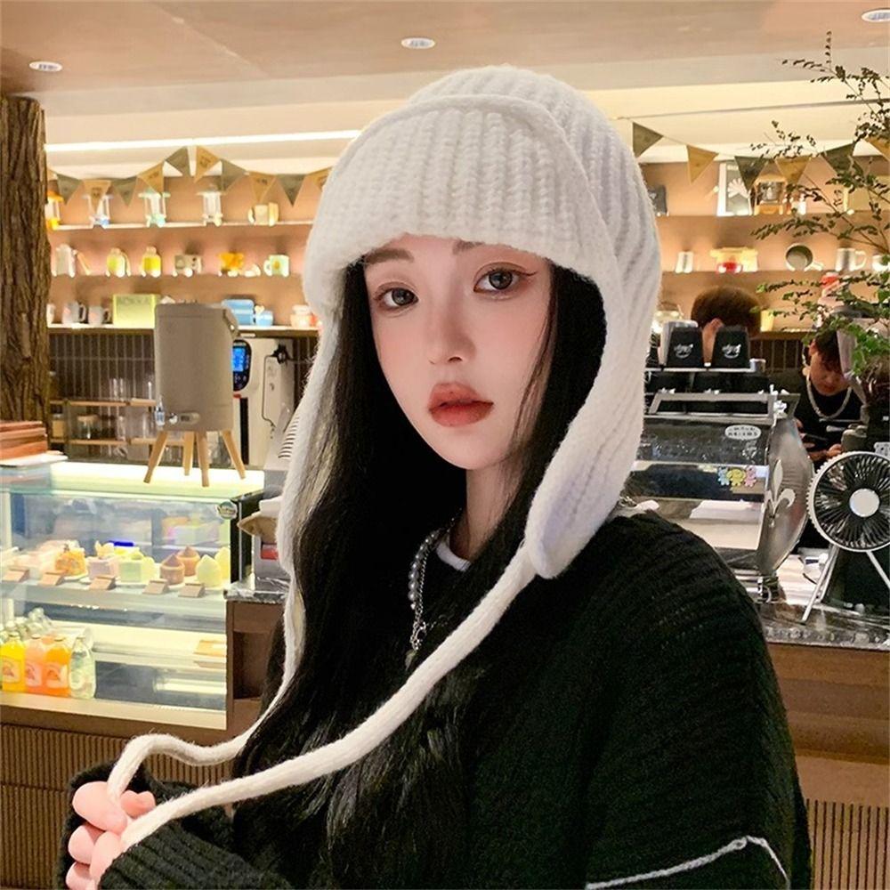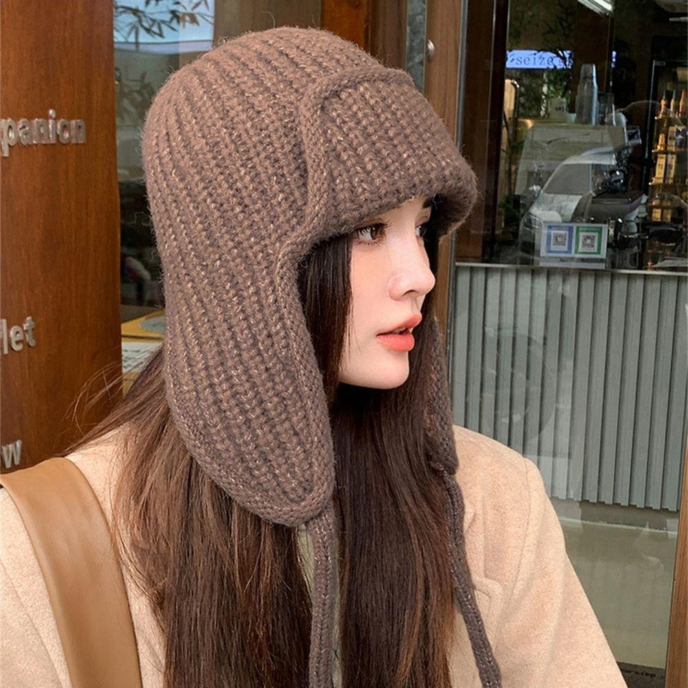 Solid Color Knitted Hat Thickened Lei Feng Hat Fashion Bonnet Caps for Women Girls