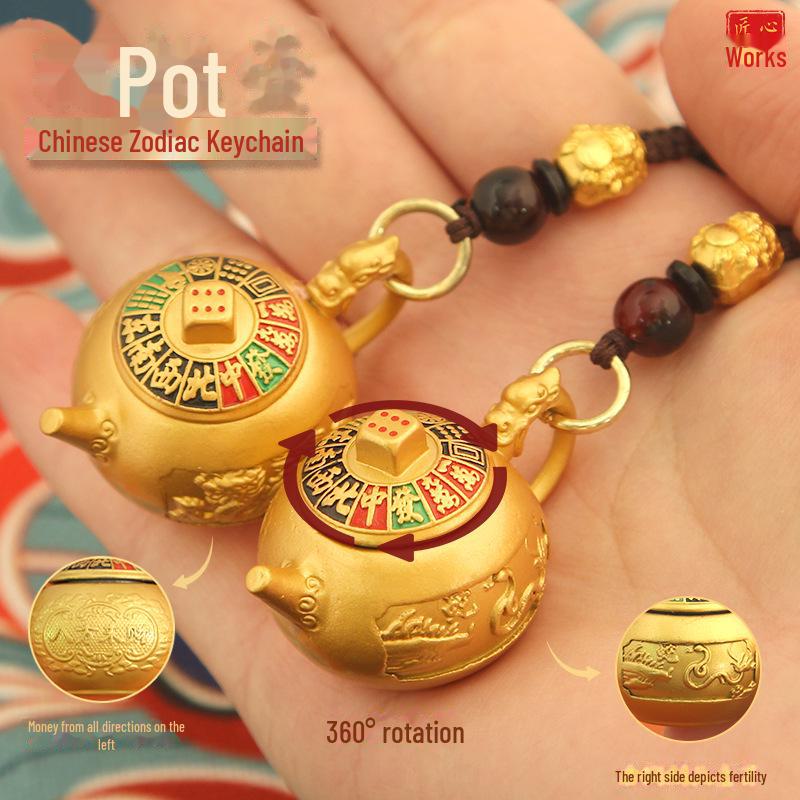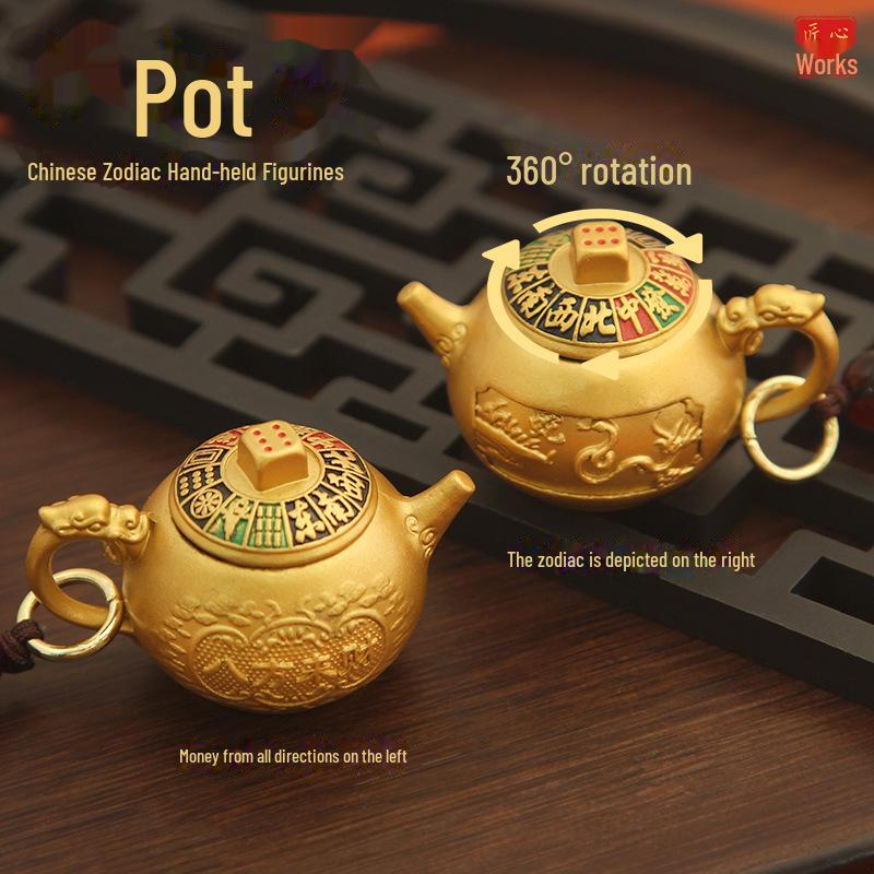 Брелок для ключей с вращающимся чайником из сплава «Зодиак» с ручкой